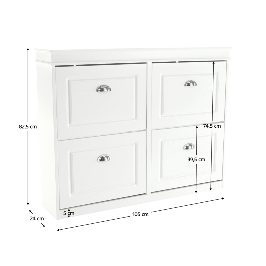 Szín: fehér Anyag: MDF/forgácslap Méretek (SzéxMéxMa): 105x24x82,5 cm 4 soros Billenő Bontásban szállítva.