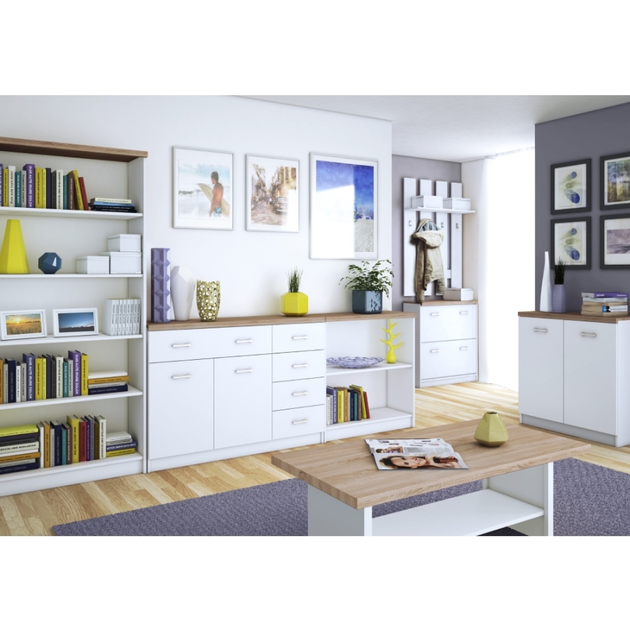 Modern elemes rendszer TOPTY alkalmas a nappaliba, előszobába, irodába vagy dolgozószobába.