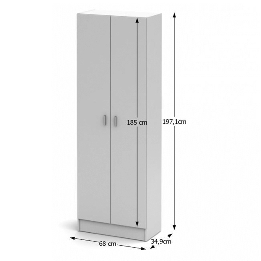 Cipősszekrény MARINA Anyag: laminált DTD Színe: fehér Méretek (SzéxMéxMa): 68x34,9x197,1 cm Anyag vastagsága: 16 mm Szállítás szétszerelve.
