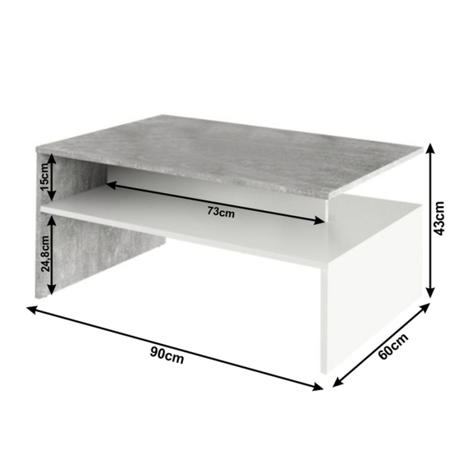 Anyag: laminált DTD Szín: beton/fehér Méretek (SzéxMéxMa): 90x60x43 cm Lamino vastagsága: 16 mm Nyitott rakodótérrel Szállítás szétszerelve