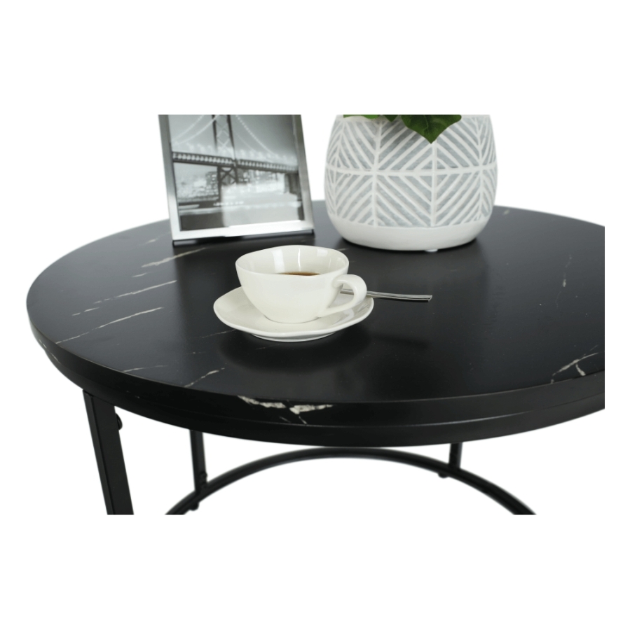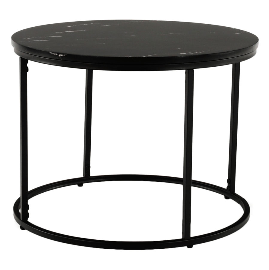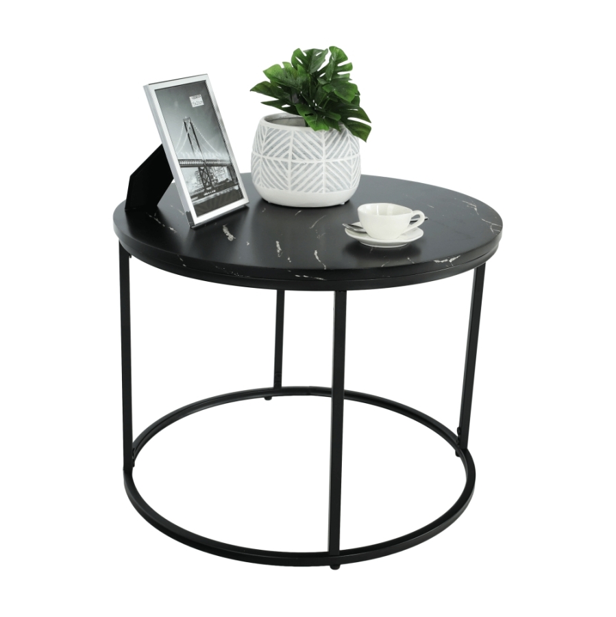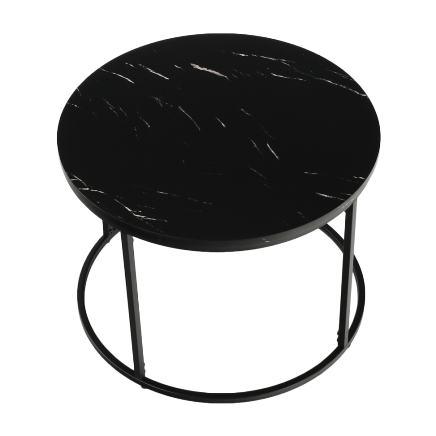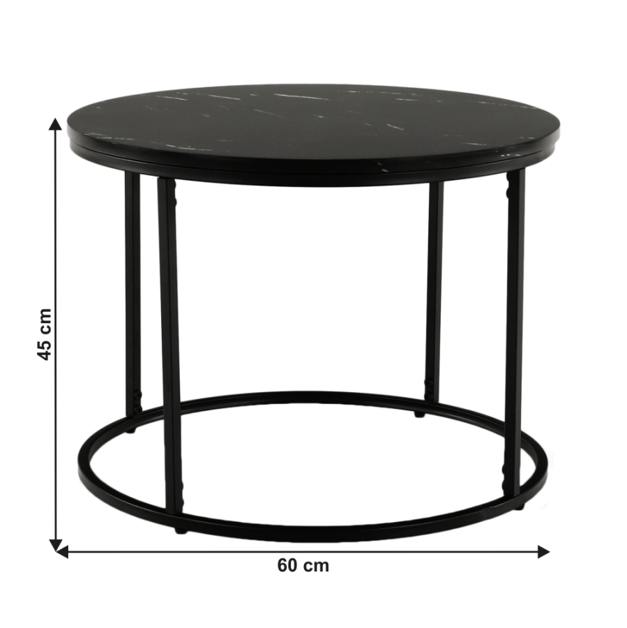 Dohányzóasztal GAGIN Anyag: MDF/fém Szín: fekete márvány/fekete Méretek (átmérő x V): 60x45 cm Bontásban szállítva.