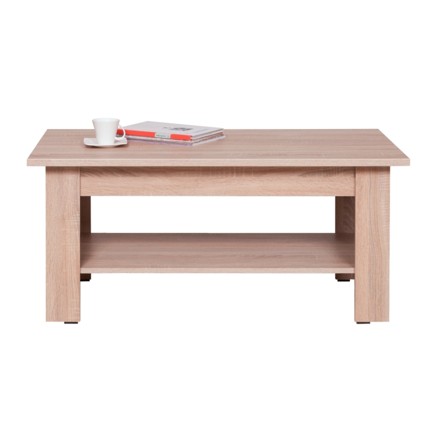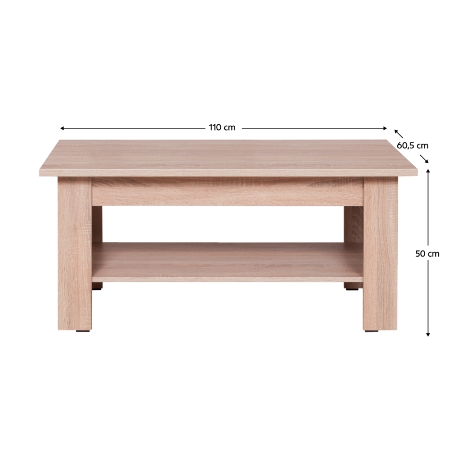 Dohányzóasztal typ 19 Alkalmas a nappaliba, hálószobába és a dolgozószobába is Anyag: laminált DTD Az élek recézett listákkal végződnek Színváltozat: sonoma tölgy Méretek (SzéxMaxMé):110x50x61 cm Szétszerelve szállítjuk