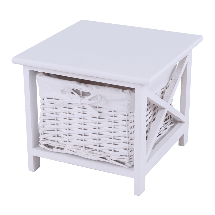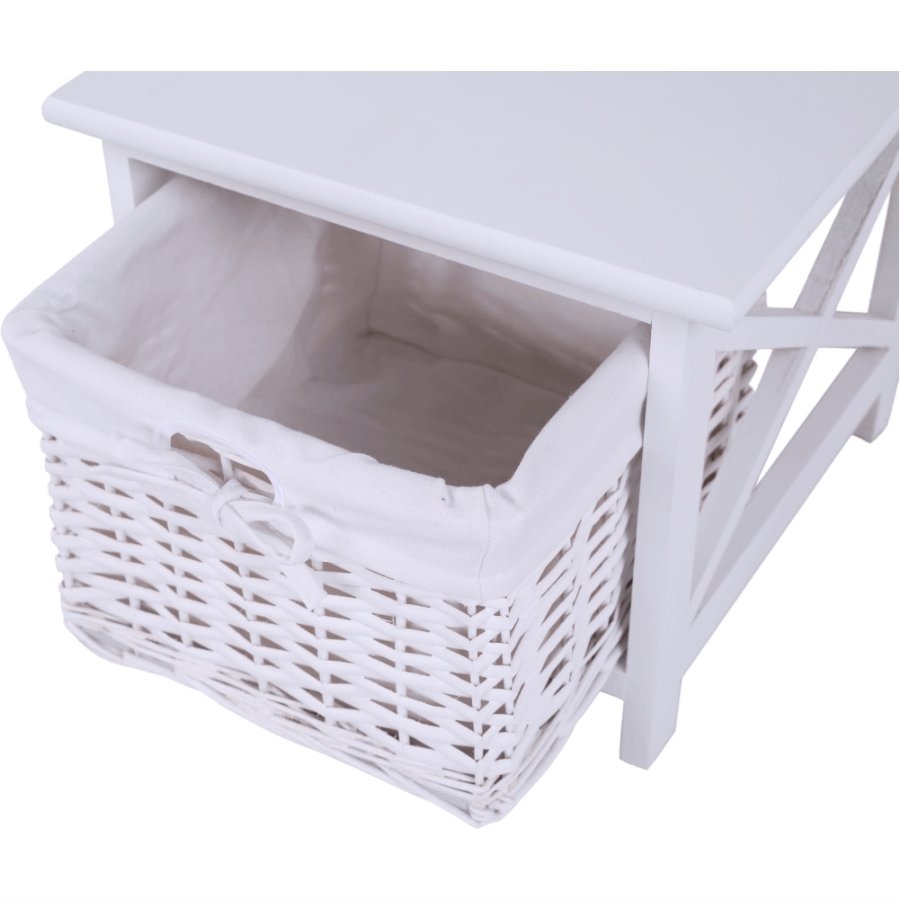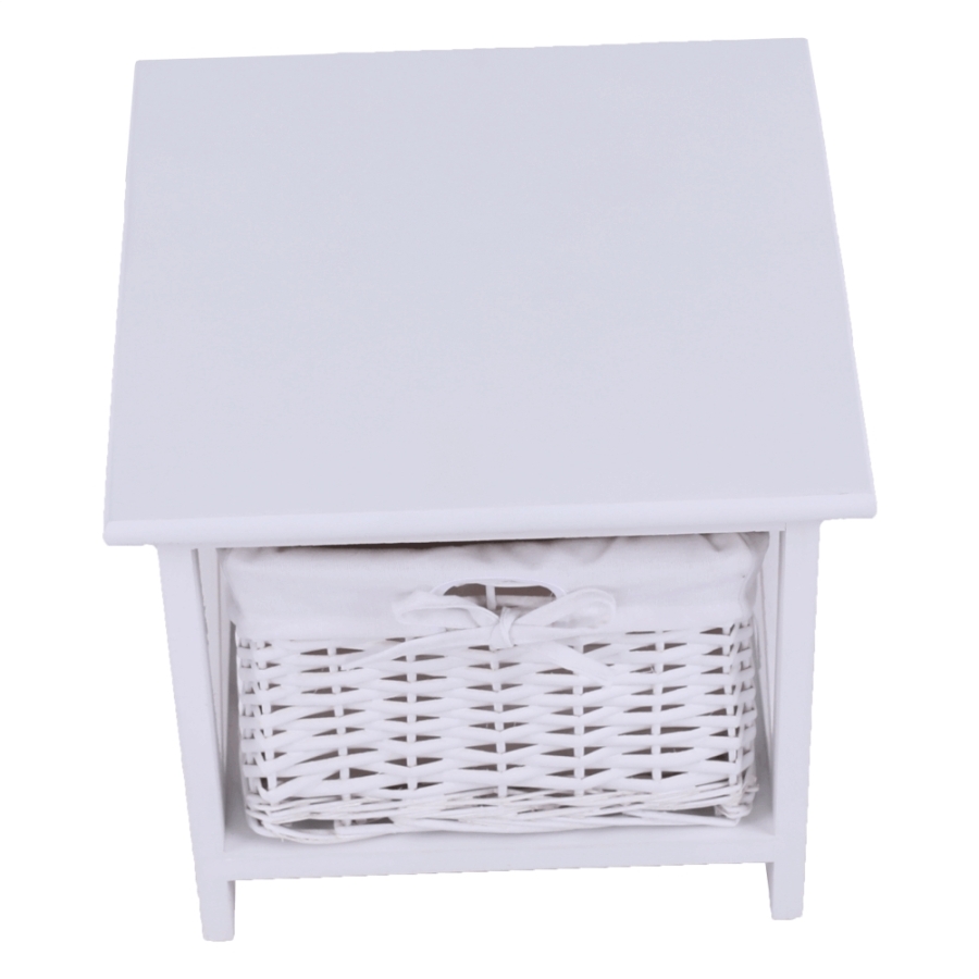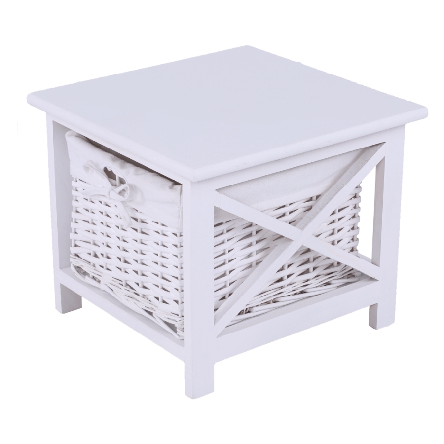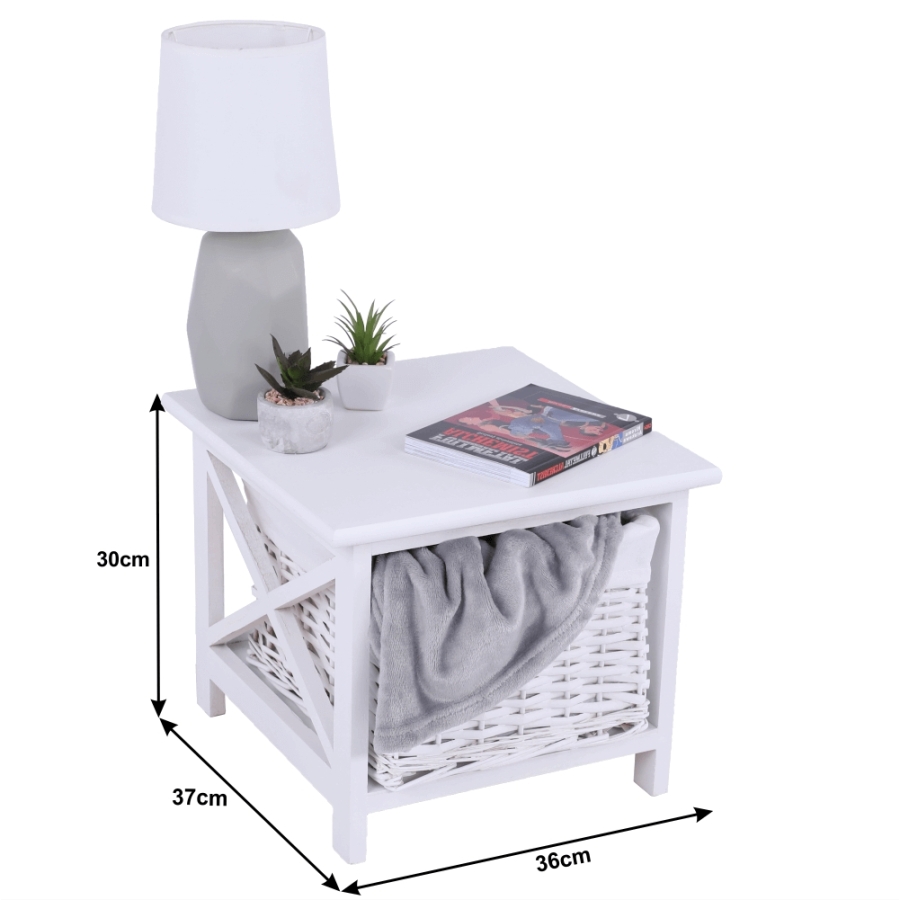Éjjeliszekrény RAFAELLO Anyag: vesszőfonás/fa/szövet Szín: fehér Méretek (SzéxMéxMa): 36x37x30 cm Összeszerelve szállítjuk