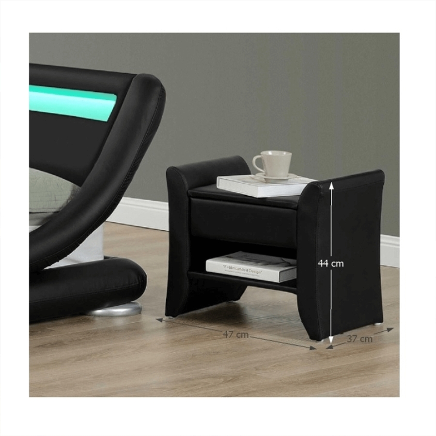 Kárpitozott éjjeliszekrény BOLTON, fiókkal és polccal, fekete textilbőr kivitelben Méretek (SzéxMéxMa): 47x37x44 cm Szállítás: összeszerelve.