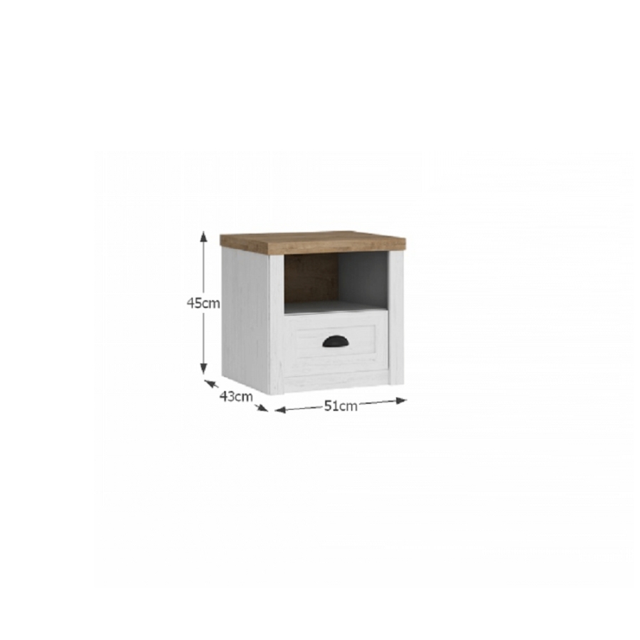 PROVANCE SN éjjeliszekrény Anyag: laminált DTD Méretek (SzéxMéxMa): 51x43x45 cm Váz vastagsága: 15 mm Felsőlap anyagvastagsága: 36 mm
