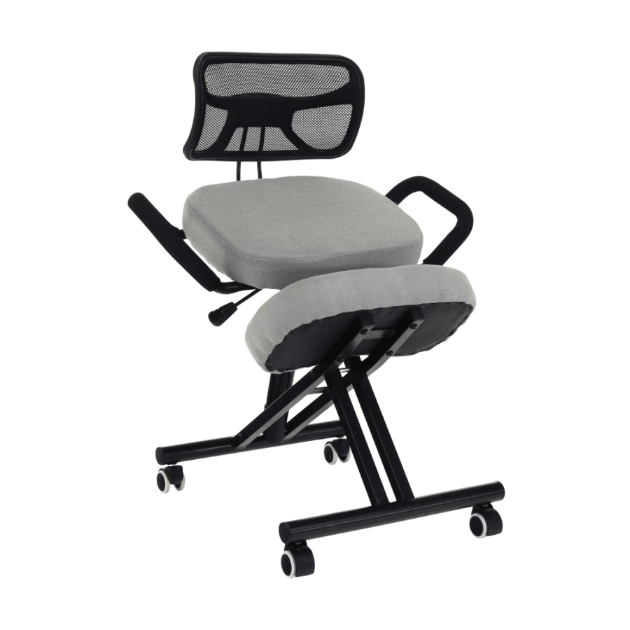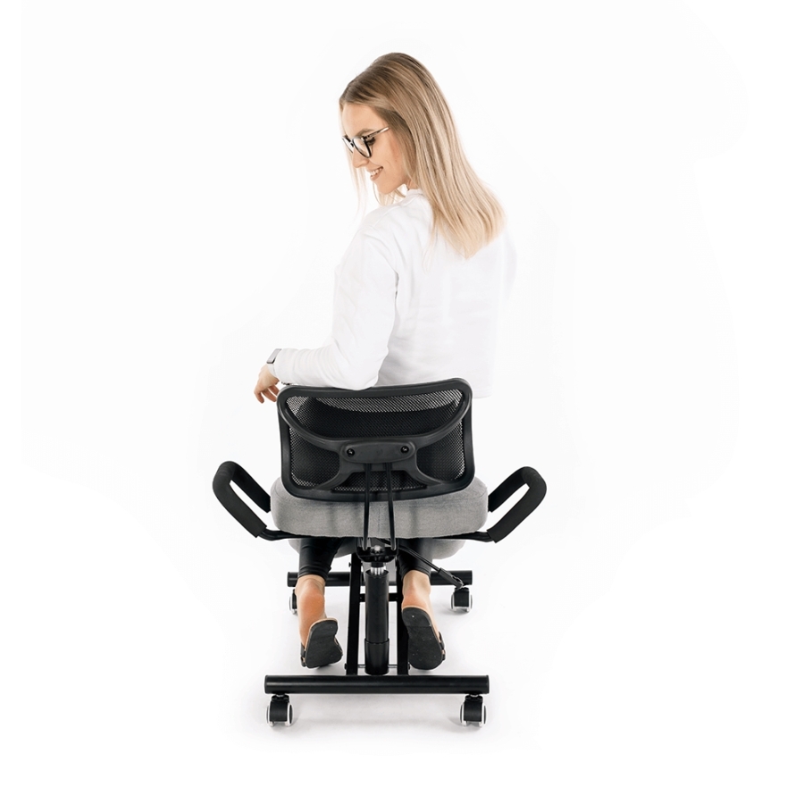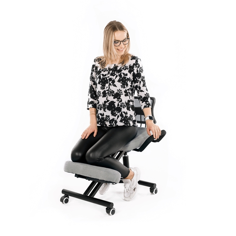 Térdeplőülés RUFUS Kárpit anyaga: szövet A szövet kopásállósága: 60 000 Martindale Szín: szürkésbarna Váz anyaga: fém Szín: fekete Méretek (SzéxMéxMa): 68x61x78-90 cm Ülésmagasság: 45-55 cm Ülésmélység: 36 cm Ülésszélesség: 44 cm Háttámla szélessége: 38 cm Háttamla magassága: 22 cm Terhelhetőség: 110 kg Csípőtámasz Kartámasz Gumikerekek Ergonomikus Szétszerelve szállítva