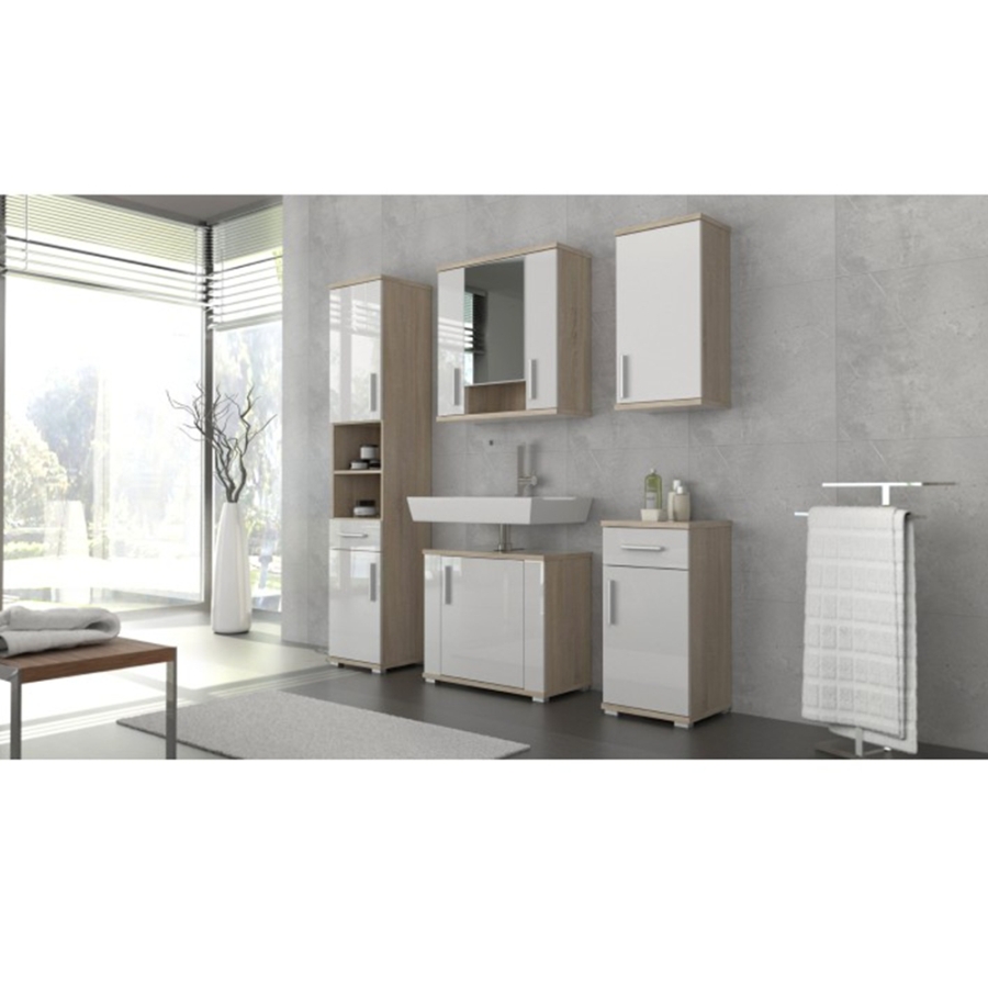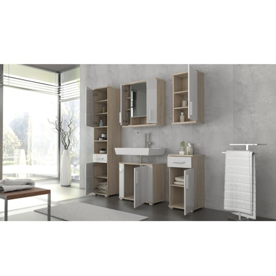 Faliszekrény tükörrel, sonoma tölgy/matt fehér, LESSY NEW 01