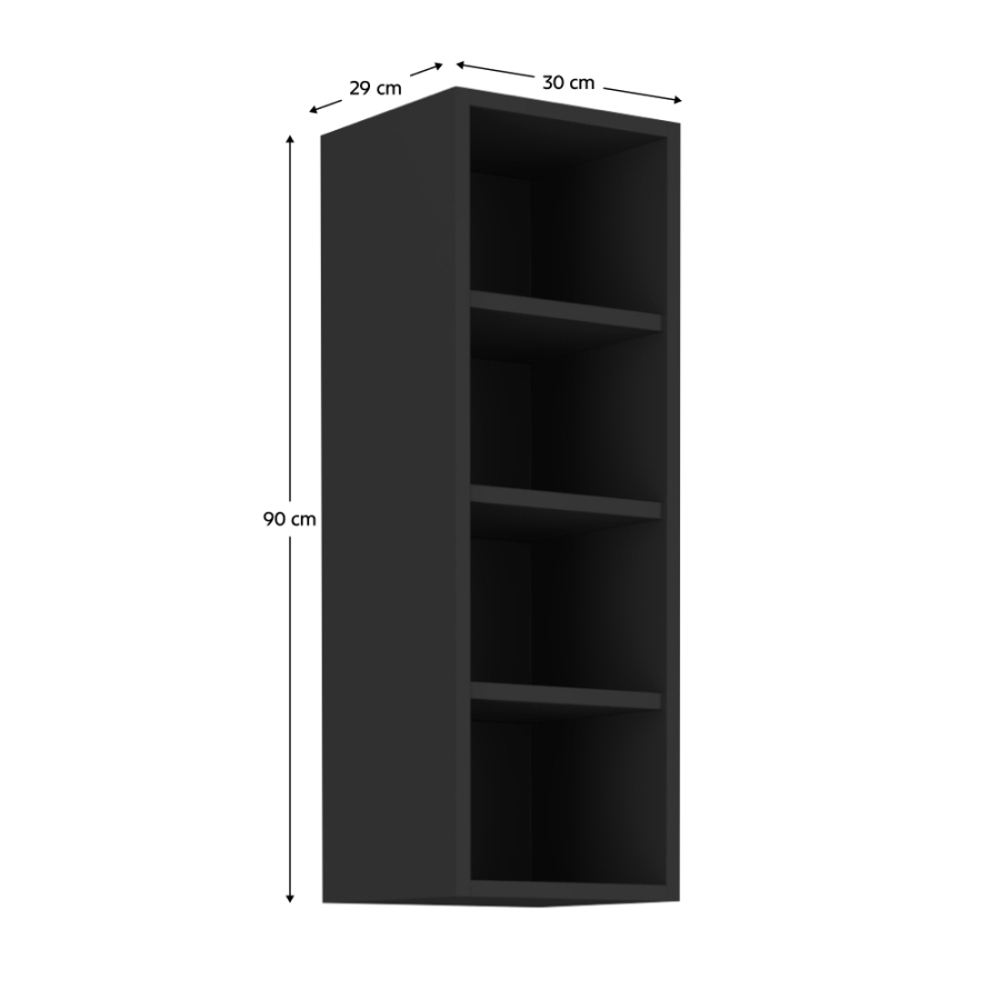 Felső polcos szekrény, fekete, ARAKA/MENZO/SIBER 30 G-90 OTW