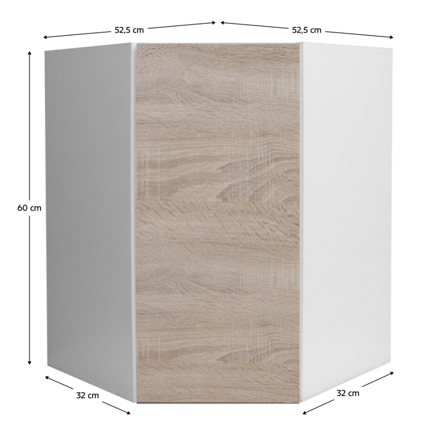 Alapkonyha: a váz DTD laminált sonoma tölgyfa, ajtók - , vagy a váz fehér magasfényű HG DTD laminált fehér/ajtók sonoma tölgyfa. Felső méret a füstelszívó szekrénykével: 2,6 m, alsó méret: 2,6 m,