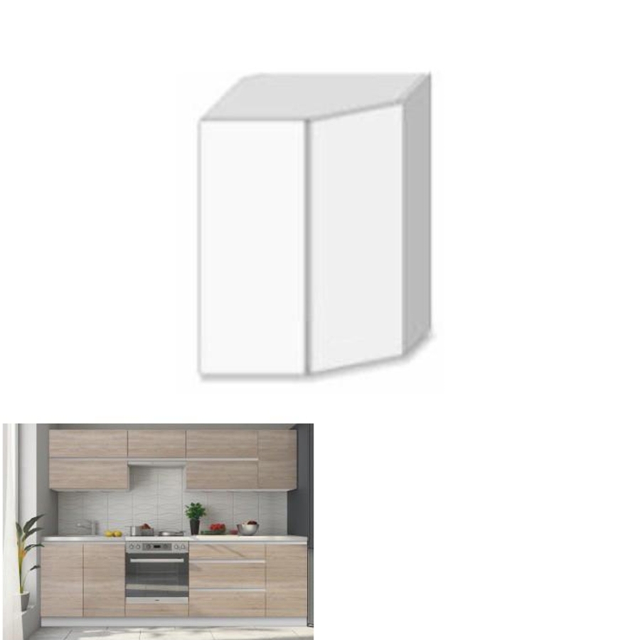 Kétajtós felső sarokszekrény elemes konyhabútorból modern stílusban és változatban