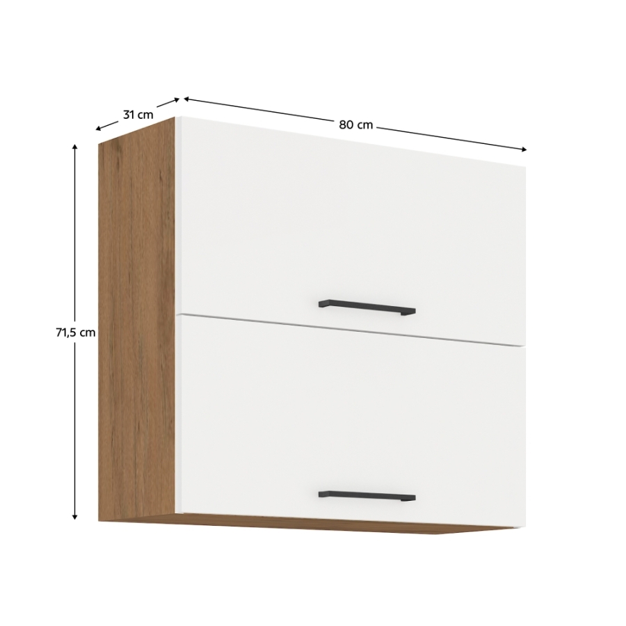 Felső szekrény, lancelot tölgy/ fehér extra magas fényű HG , VEGA 80 GU-72 2F