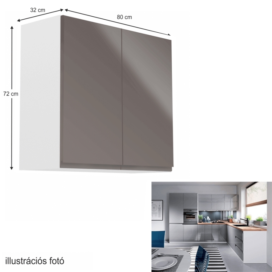 Felsőszekrény, fehér/szürke extra magasfényű, AURORA G80