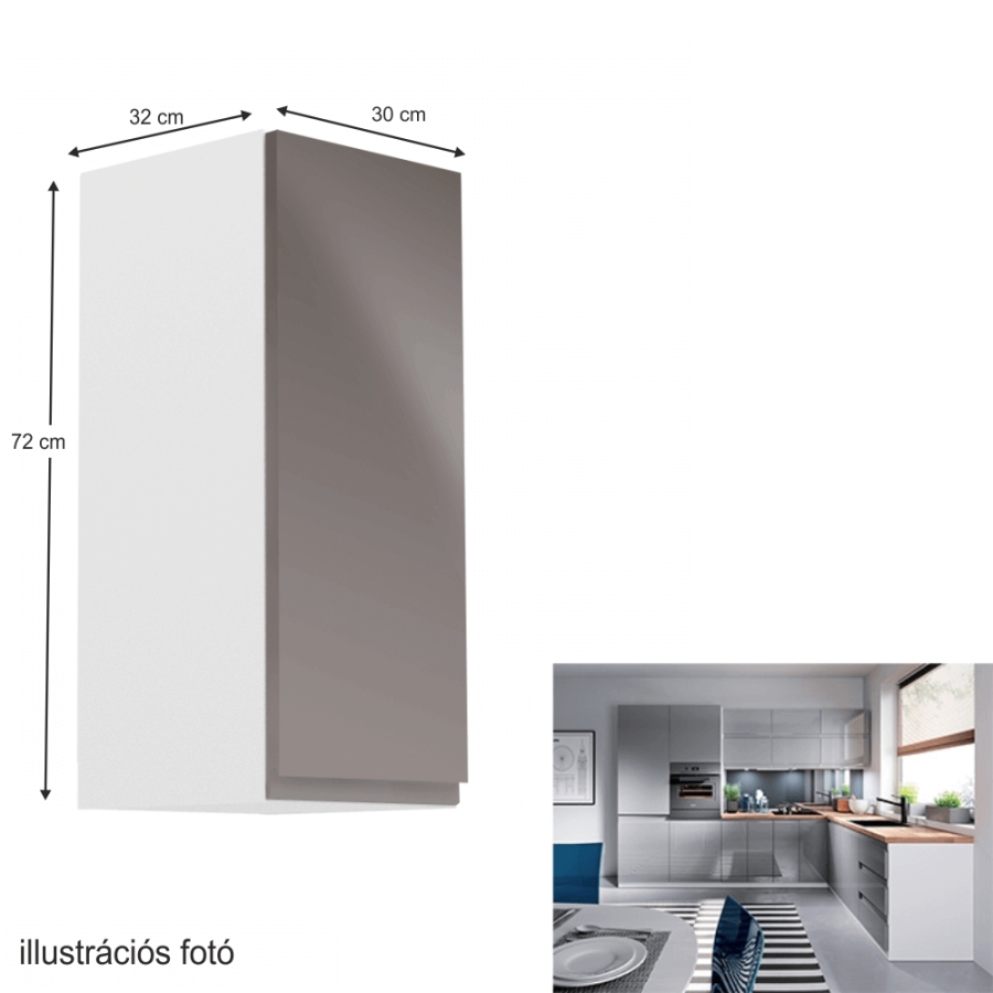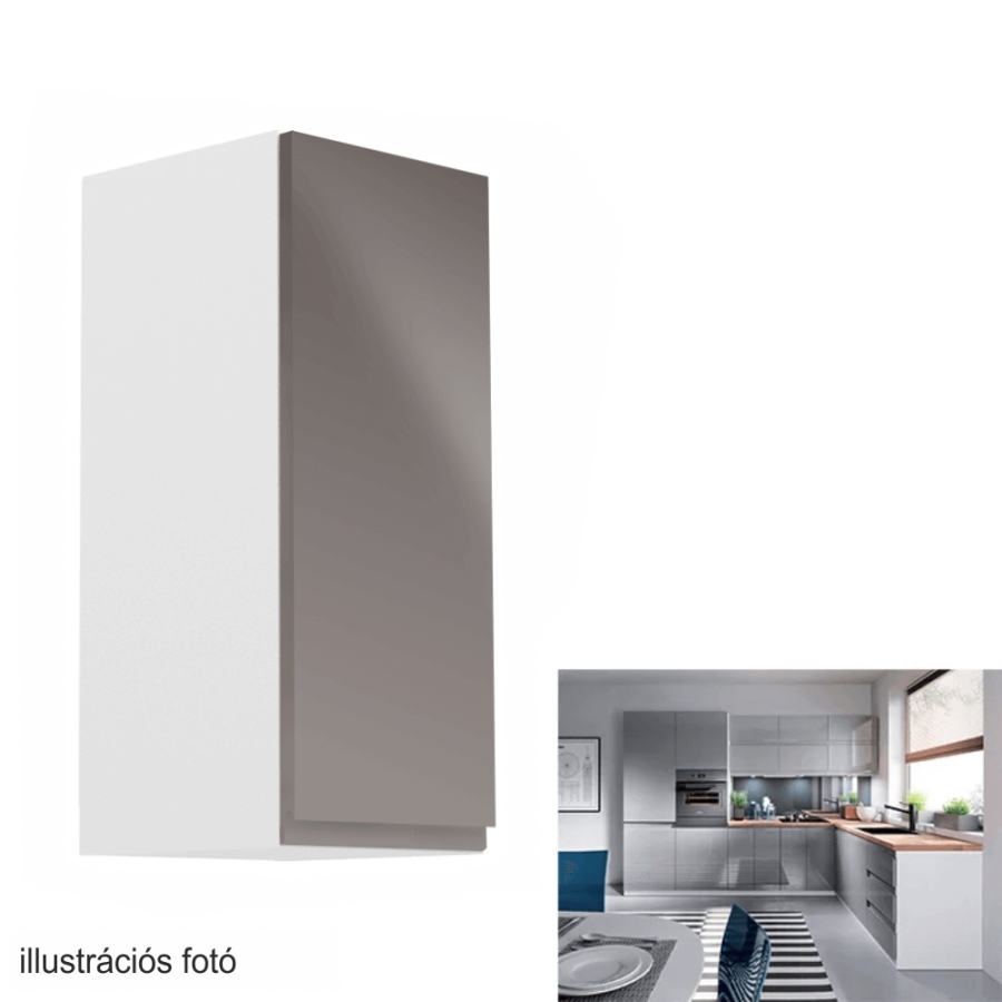Felsőszekrény, fehér/szürke extra magasfényű, jobbos, AURORA G30