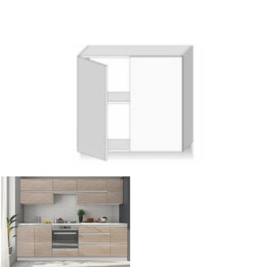 Alapkonyha: a váz DTD laminált sonoma tölgyfa, ajtók - , vagy a váz fehér magasfényű HG DTD laminált fehér/ajtók sonoma tölgyfa. Felső méret a füstelszívó szekrénykével: 2,6 m, alsó méret: 2,6 m,