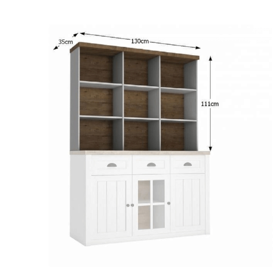 Felsőszekrény komódhoz PROVANCE sosna andersen/tölgy lefkas színváltozatban. Anyag: laminált DTD Méretek (SzéxMéxMa): 130x35x111 cm Szétszerelt állapotban szállítjuk