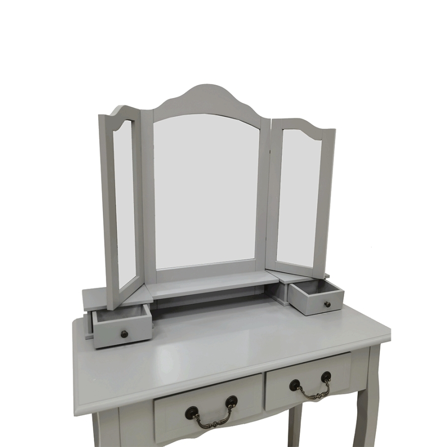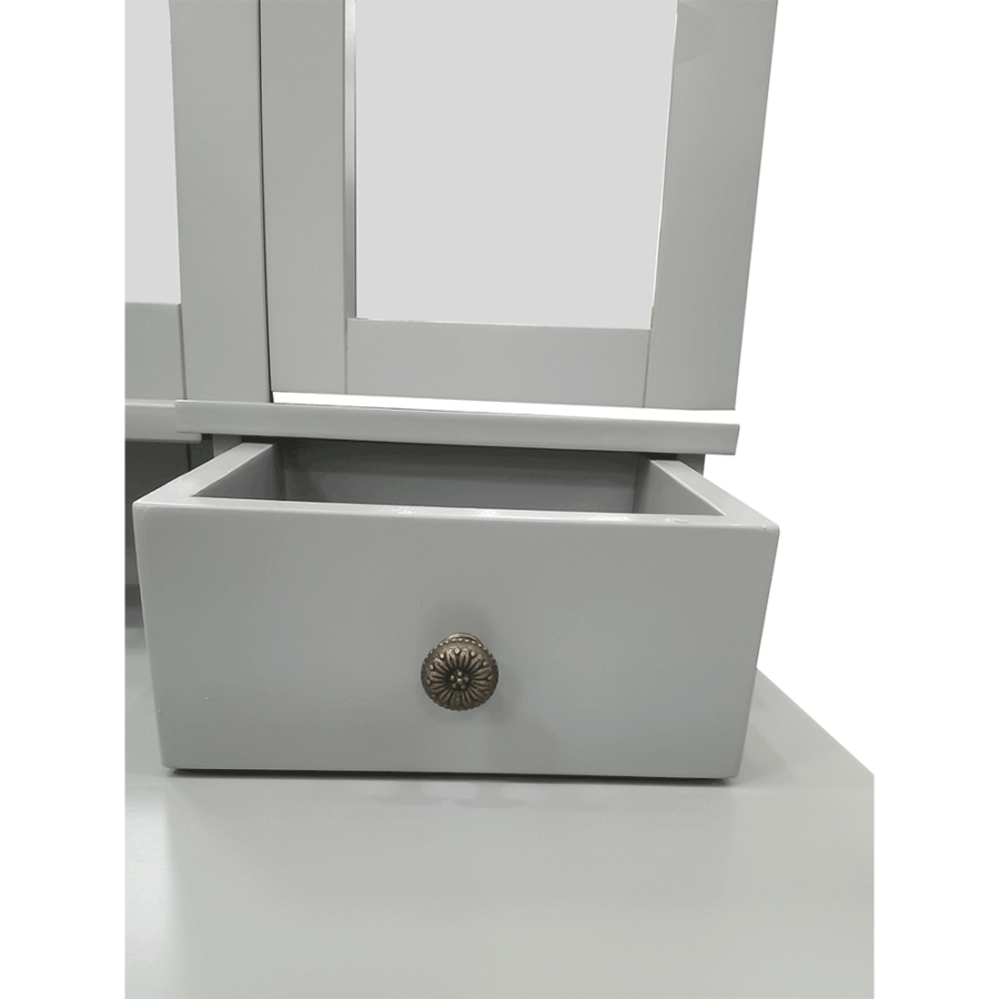 Fésülködő asztal zsámollyal, szürke/ezüst, REGINA NEW