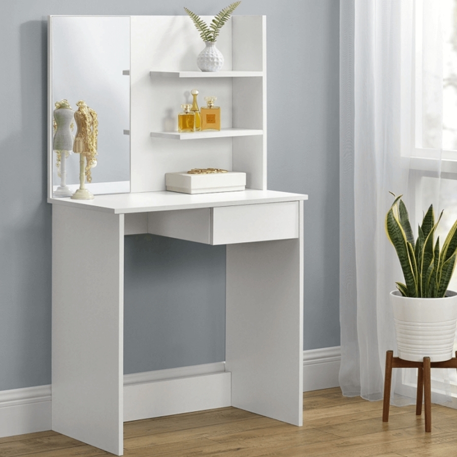 Fésülködőasztal BELEZA Színe: fehér Anyag: laminált DTD Méretek (SzéxMéxMa): 75x40x134,5 cm Lapraszerelten szállítva