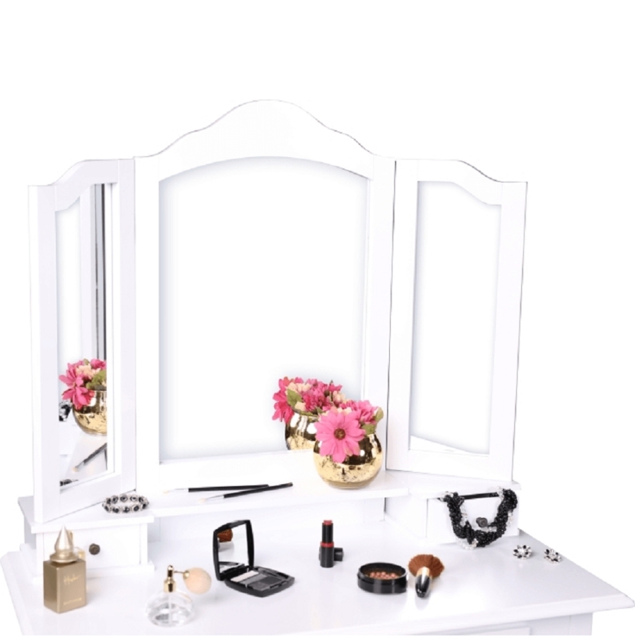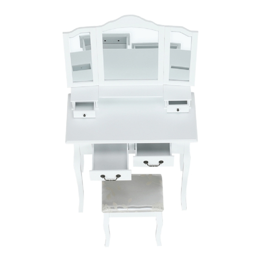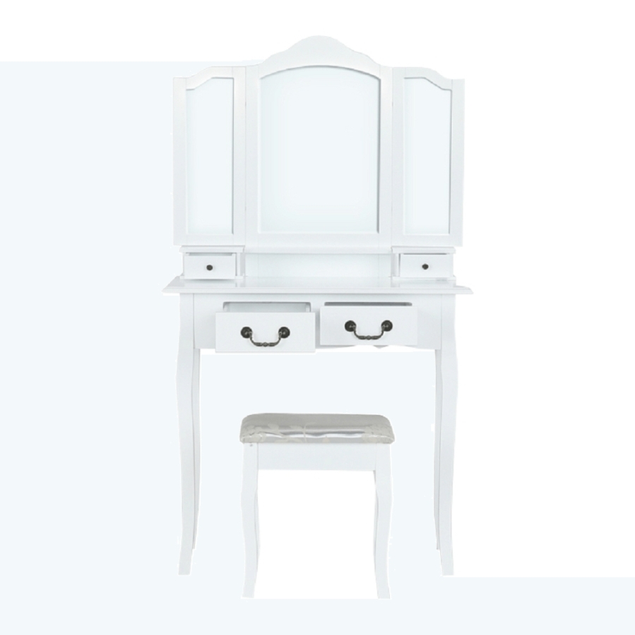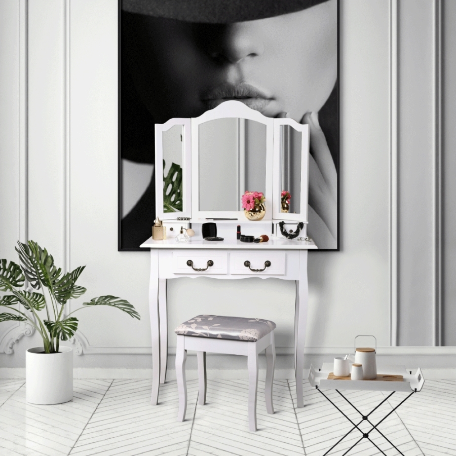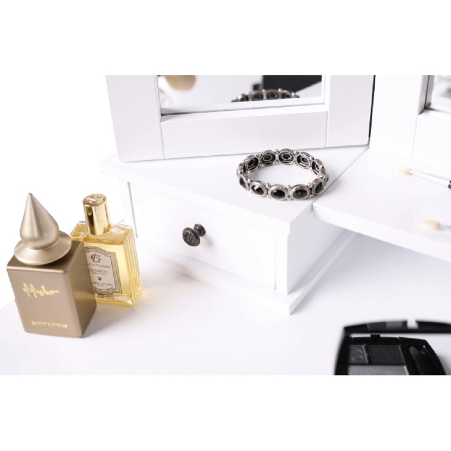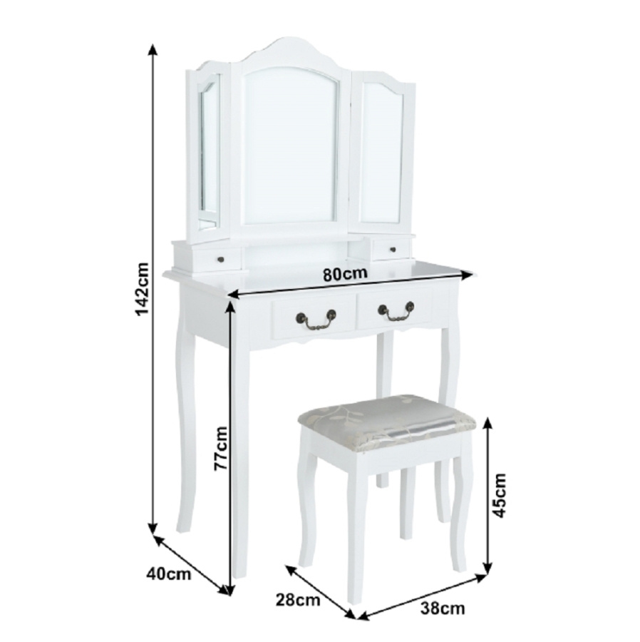 Fésülködőasztal zsámollyal, fehér/ezüst, REGINA NEW
