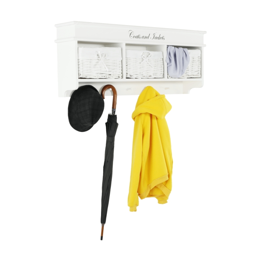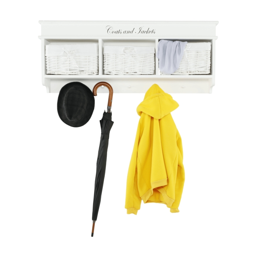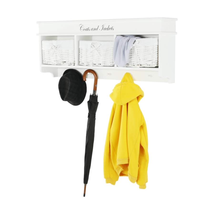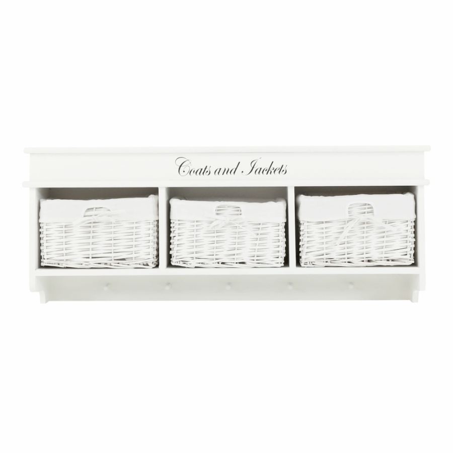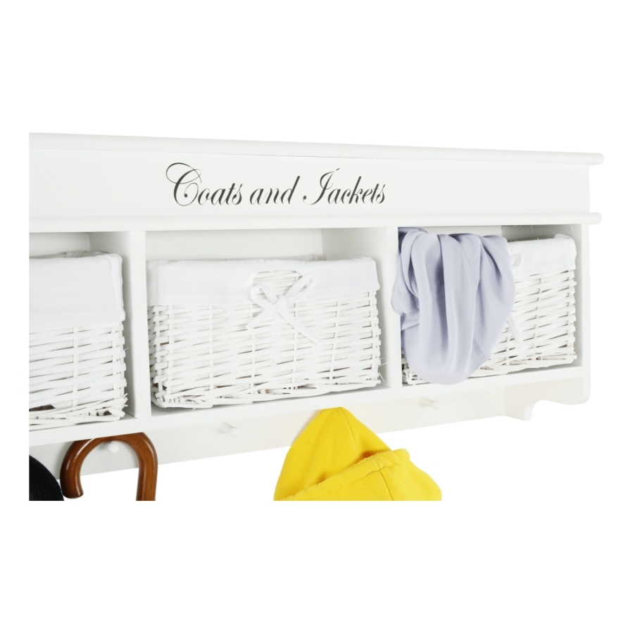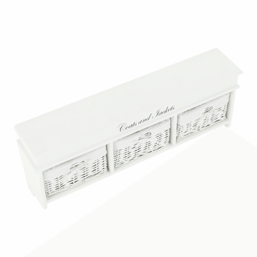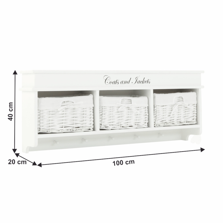 "Fogas BLANCO három fonott kosárral. Méretek (SzéxMéxMa): 100x20x40 cm Szállítás összeszerelve."