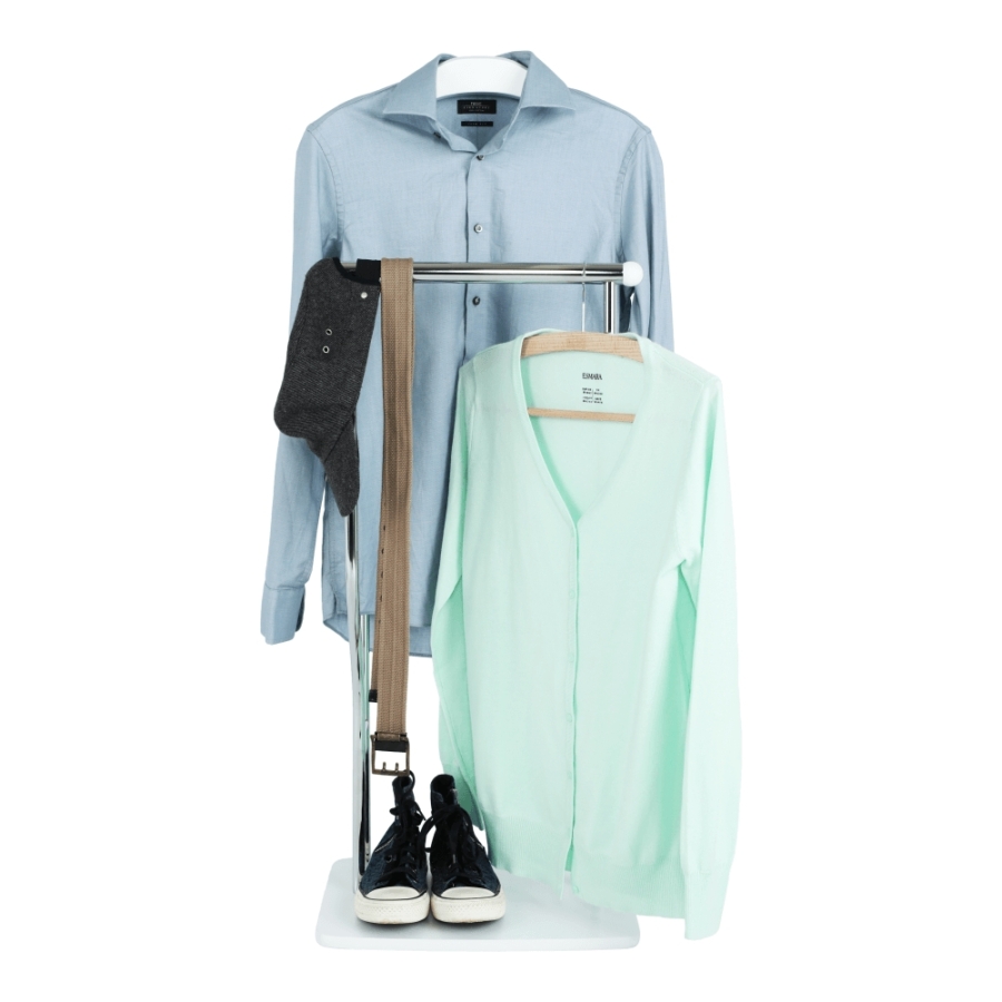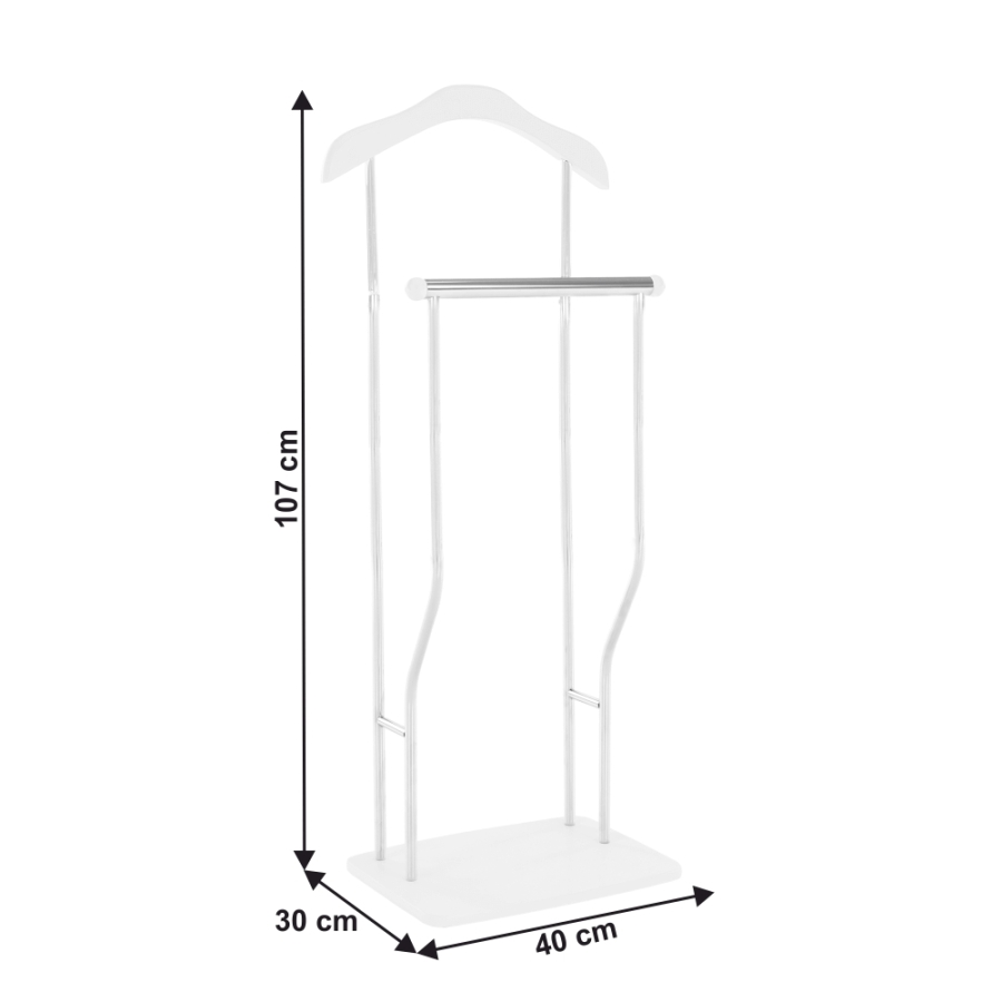 Fogas, néma szolga Anyag: fém/fa Színváltozat: króm/fehér Méretek (SzéxMaxMé): 40x30x107 cm Szétszerelt állapotban szállítjuk