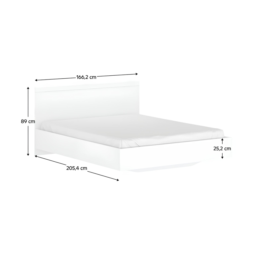 Anyag: laminált DTD Szín: fehér Méretek (SzxMéxMa): 166,2x205,4x89 cm Alvófelület: 160x200 cm Anyag vastagsága: 1,6 cm ABS élek Modern dizájn Elegáns ágy Ágyrács nélkül szállítva Matrac nélkül szállítva Azt javasoljuk, hogy legalább 16 cm magas matracot vásároljon Bontásban szállítva