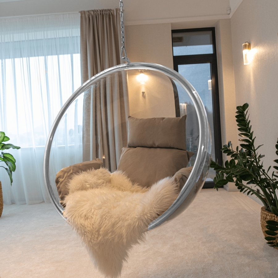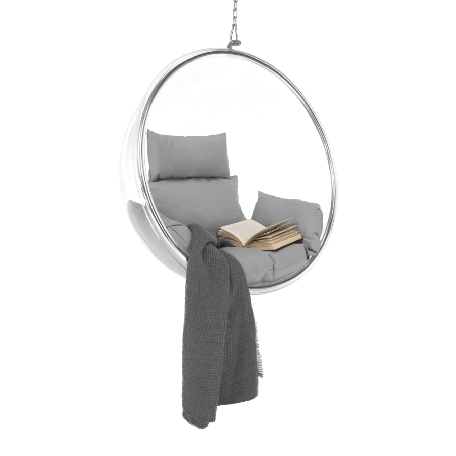 Függő fotel, átlátszó/ezüst/szürke, BUBBLE NEW TYP 1