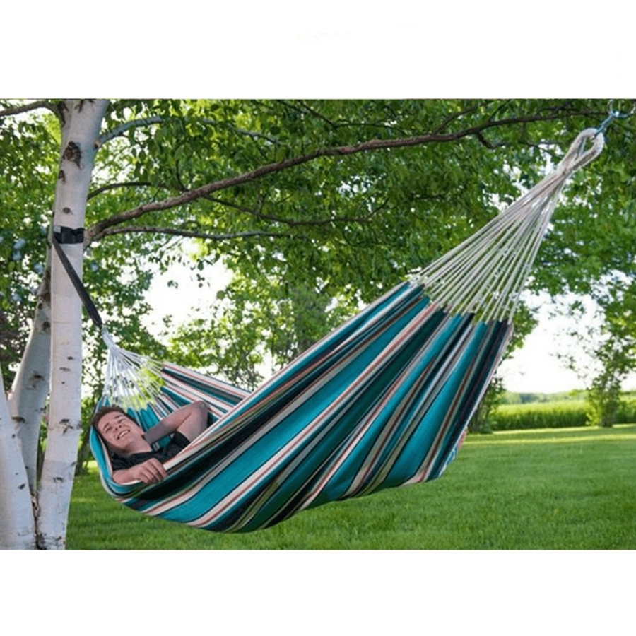 Hálók anyaga: 50% pamut/50% poliészter Szín: minta - kék csík Méretek (SzéxHo): 160x220 cm Teljes hossz: 320 cm Teherbírás: 200 kg Alkalmas két személy számára Alkalmas bel és kültérre egyaránt Használható beltérben és kültérben is Különböző felfüggesztés lehetősége Állvány nélkül szállítjuk Szétszerelve szállítjuk