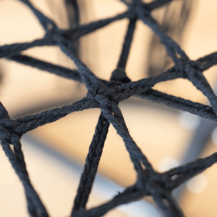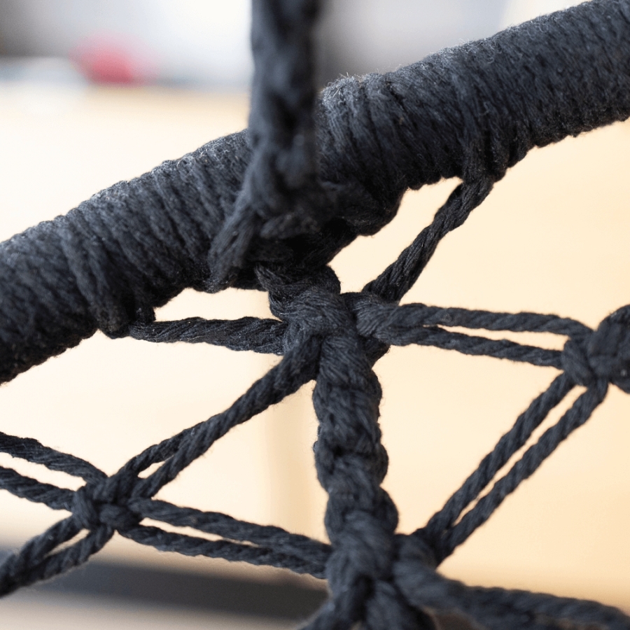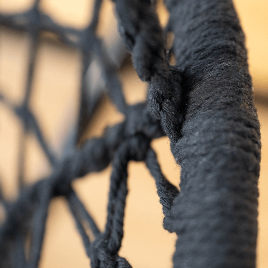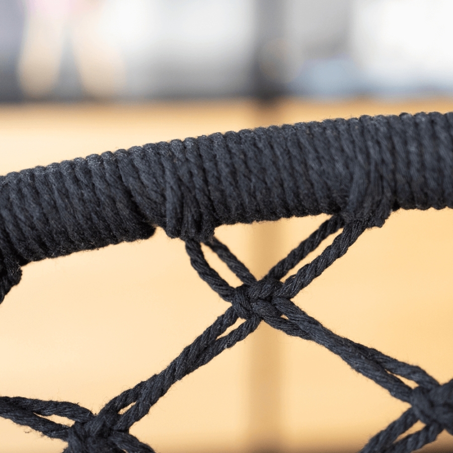 Anyag: fém/100% pamut Szín: fekete Méretek (SzéxMéxMa): 80x120 cm 4 kötél Maximális teherbírás: 120 kg Indoor/outdoor Állvány nélkül szállítjuk Az állvány nem része a csomagnak, megrendelhető Bontásban szállítva Mosási hőmérséklet 60° Ne fehérítse Közepes hőmérsékleten vasalja Árnyékban szárítás Vegyszerrel ne tisztítsa