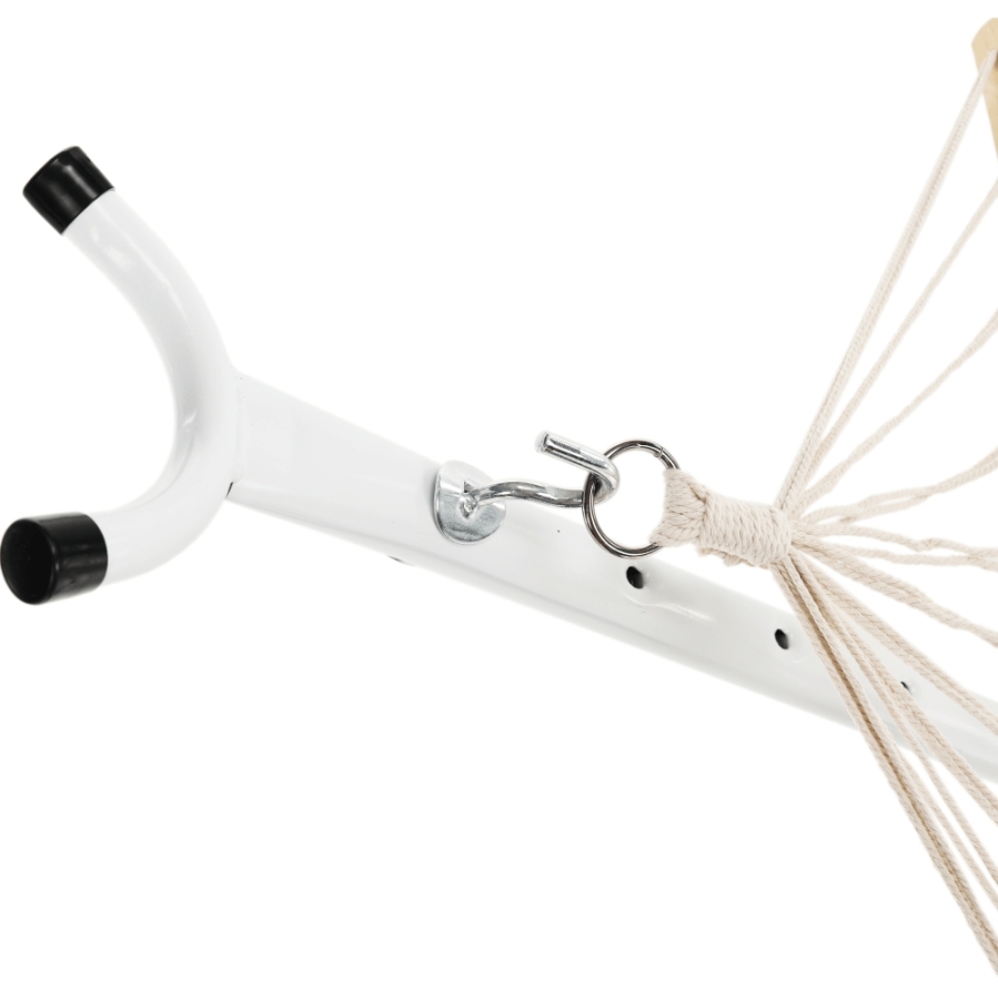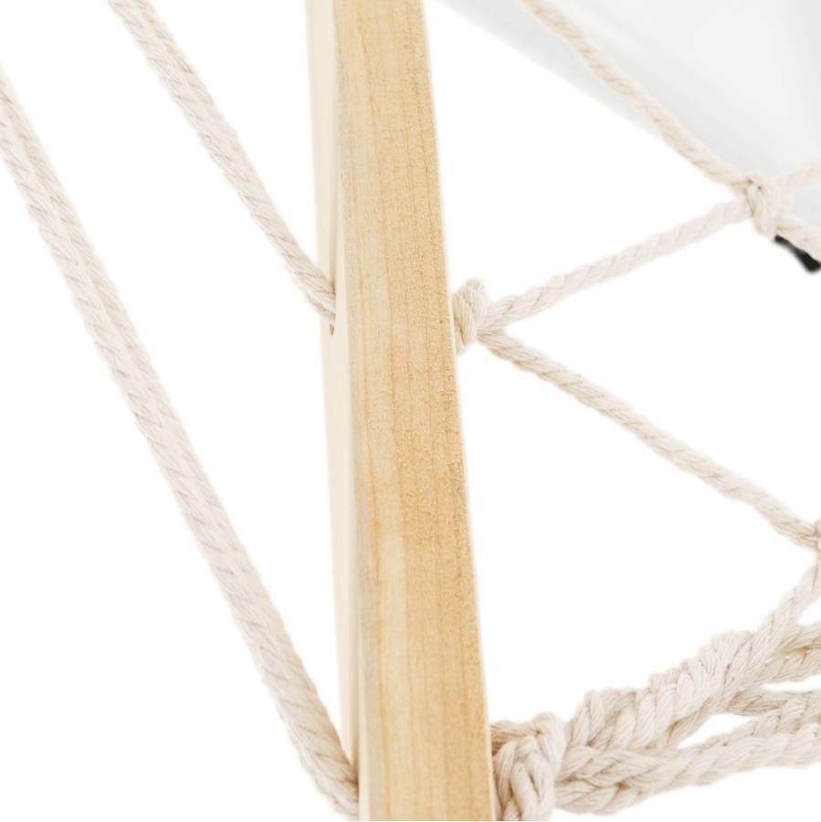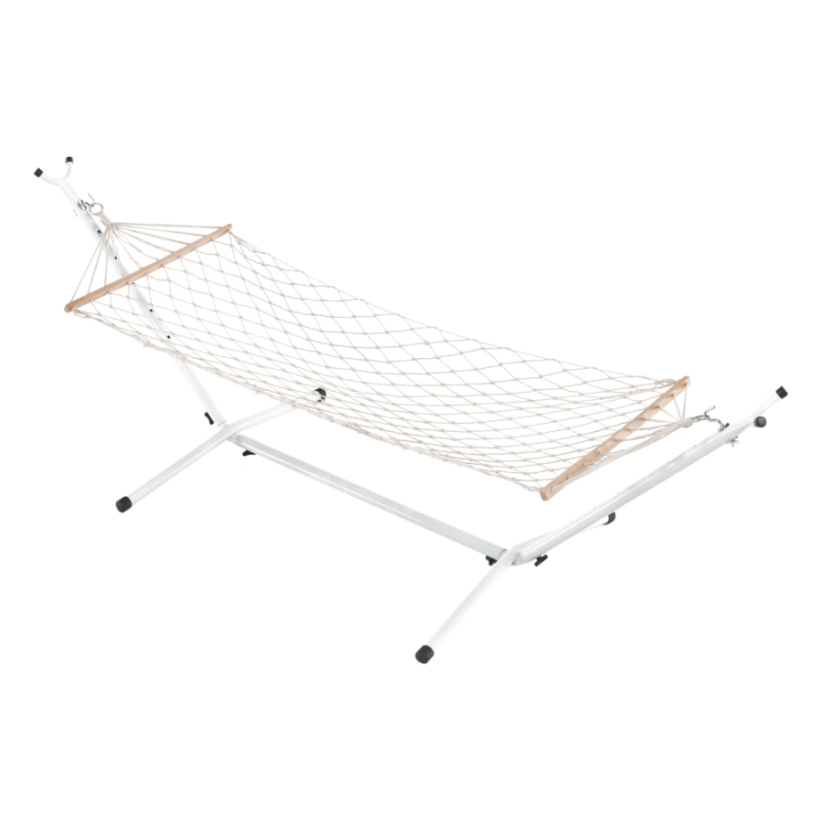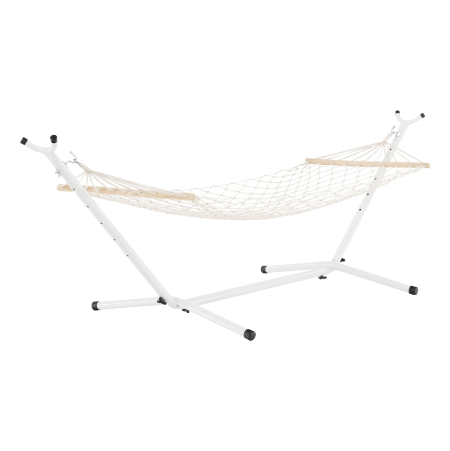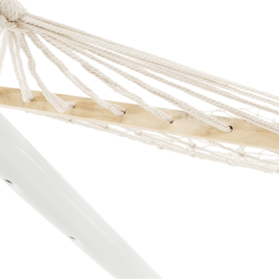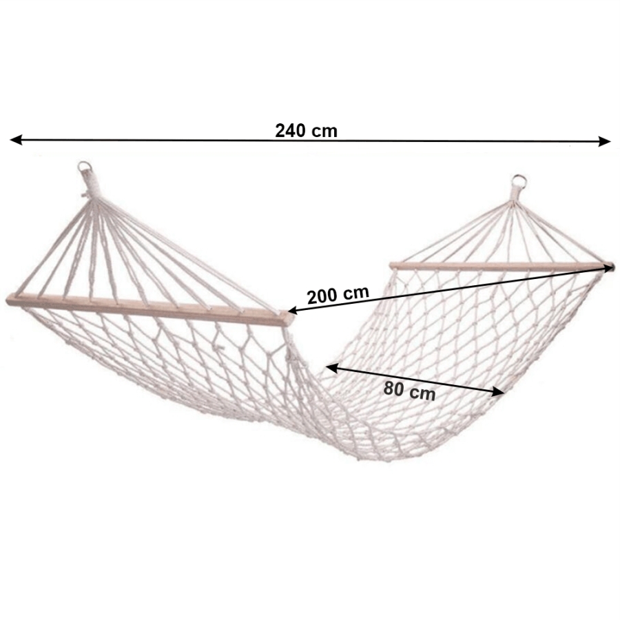 Függőágy ATIKA NEW TYP 2 Anyag: 100% pamut/ fa Szín: fehér Fekvőfelület (SzéxHo): 80x200cm Teljes hossz: 240cm Teherbírás: 120 kg Állvány nélkül szállítjuk Az állvány nem része a csomagnak, megrendelhető Bontásban szállítva. Mosási hőmérséklet 60° Ne fehérítse Közepes hőmérsékleten vasalja Árnyékban szárítás Vegyszerrel ne tisztítsa