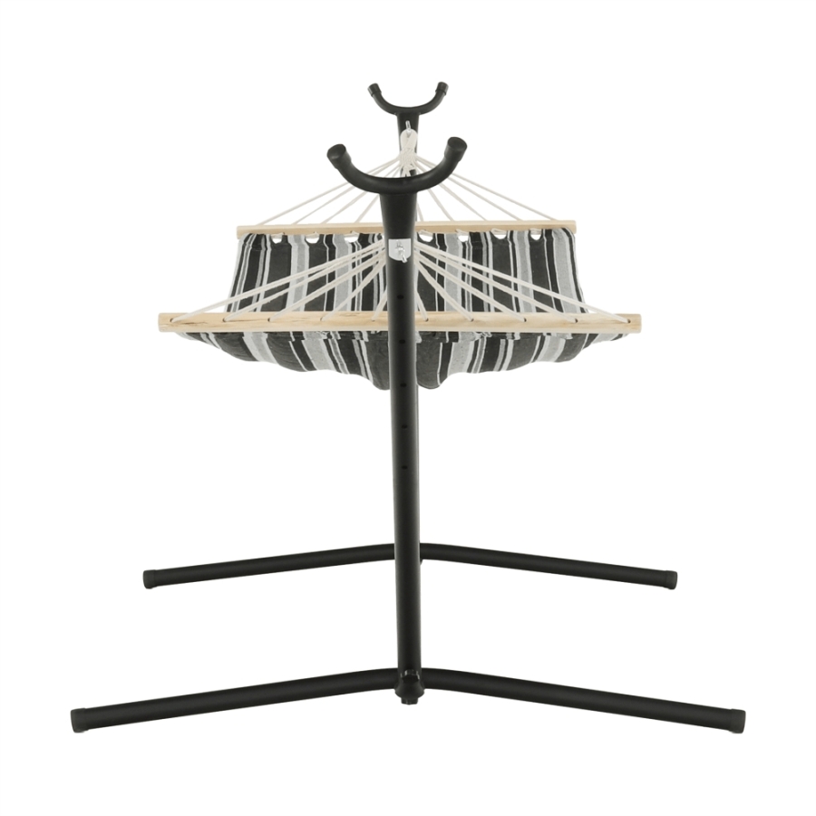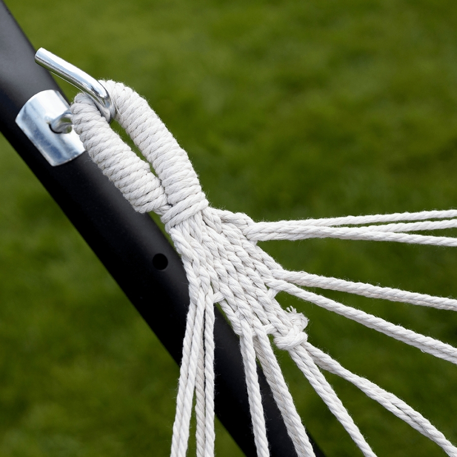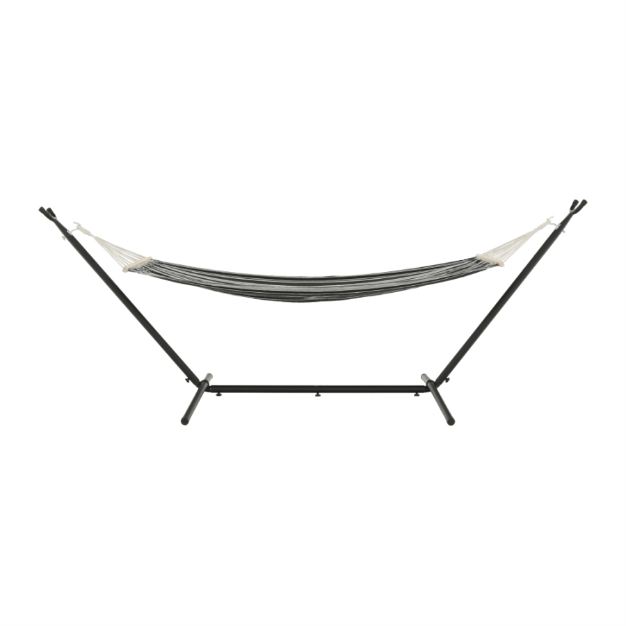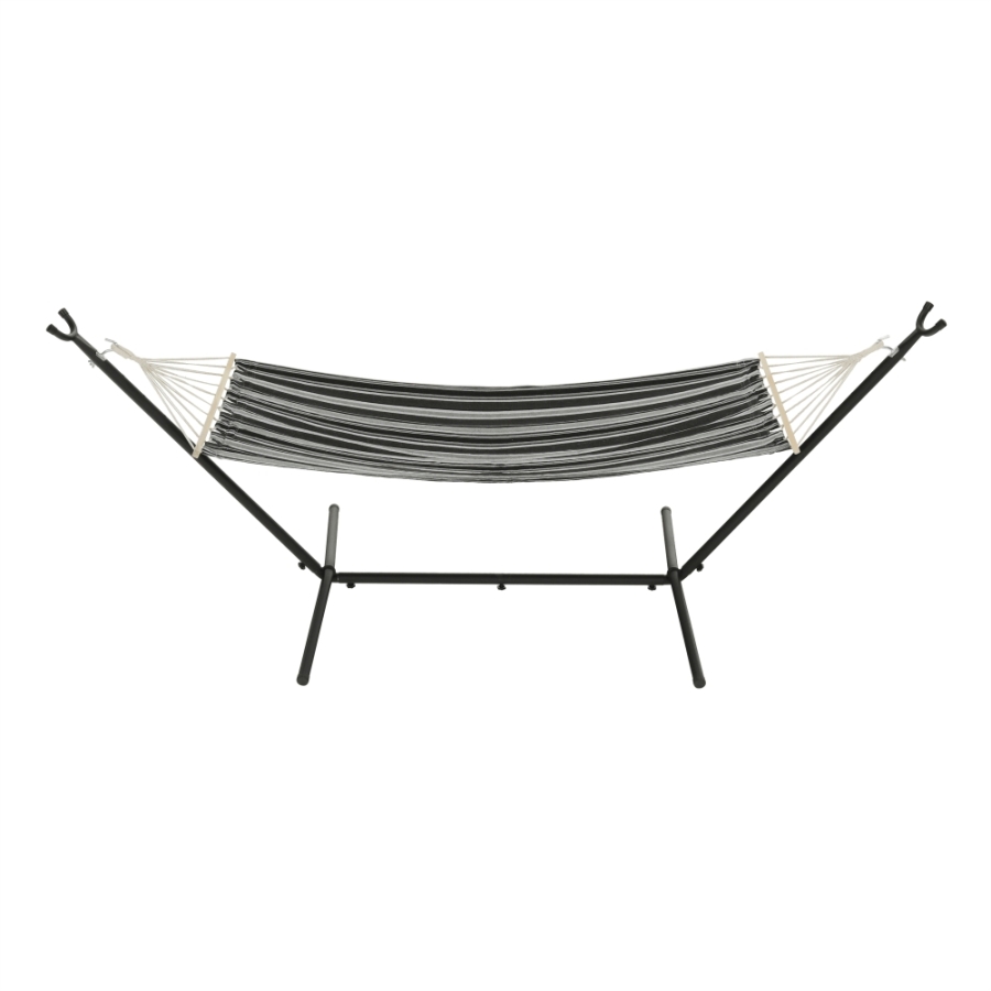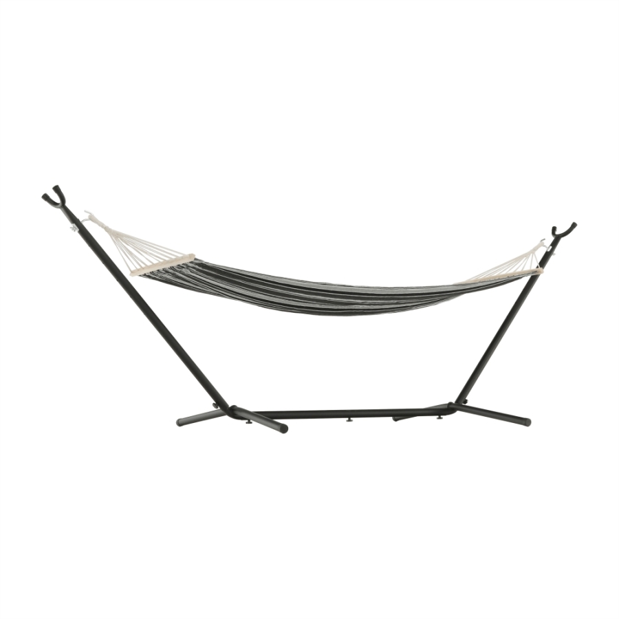 Függőágy EVANA NEW Anyag: 50% pamut/50% poliészter/fa Színe: szürke/fehér Fekvőfelület (SzéxHo): 80x200cm Teljes hossz: 260cm Terhelhetőség: 120 kg Alkalmas 1 személy számára Alkalmas kültérre és beltérbe egyaránt Állvány nélkül szállítjuk Az állvány nem része a csomagnak, megrendelhető Szállítás: szétszerelve Mosási hőmérséklet 60° Ne fehérítse Közepes hőmérsékleten vasalja Árnyékban szárítás Vegyszerrel ne tisztítsa