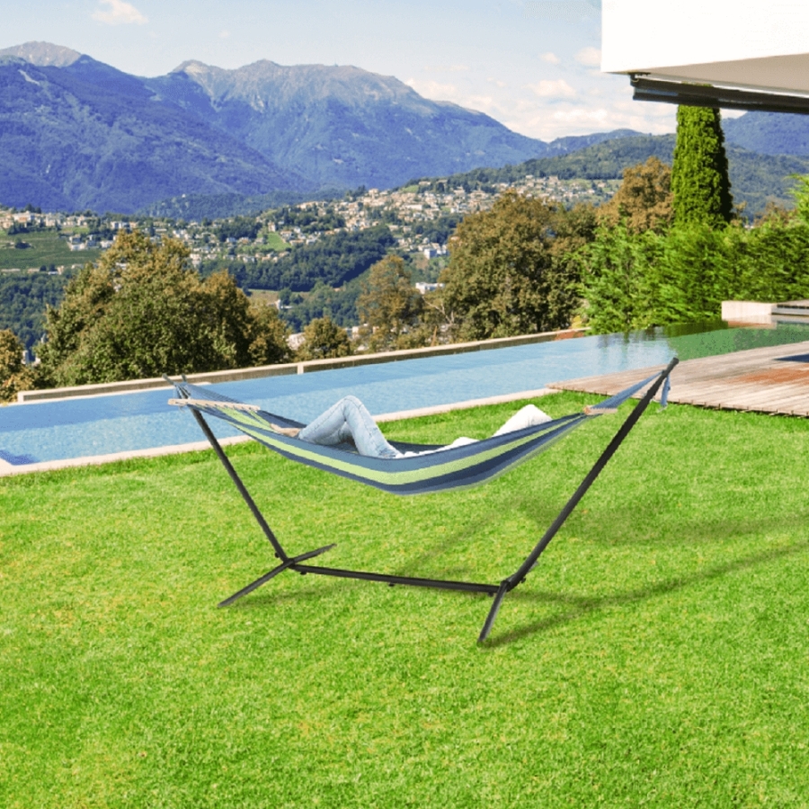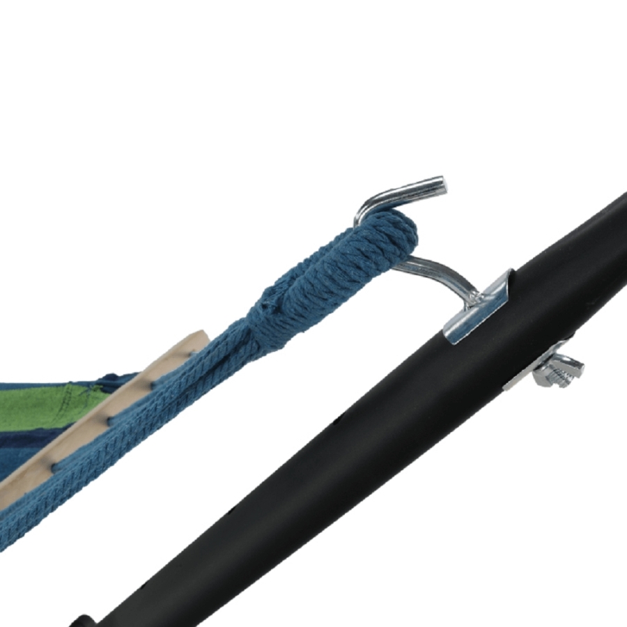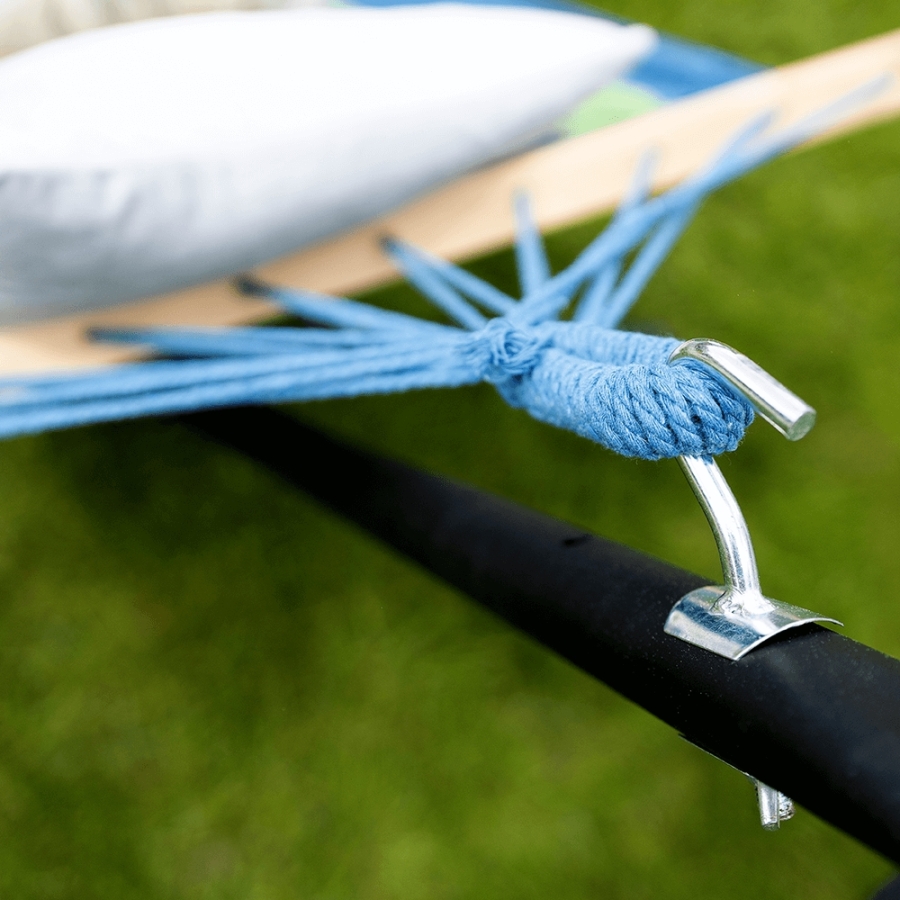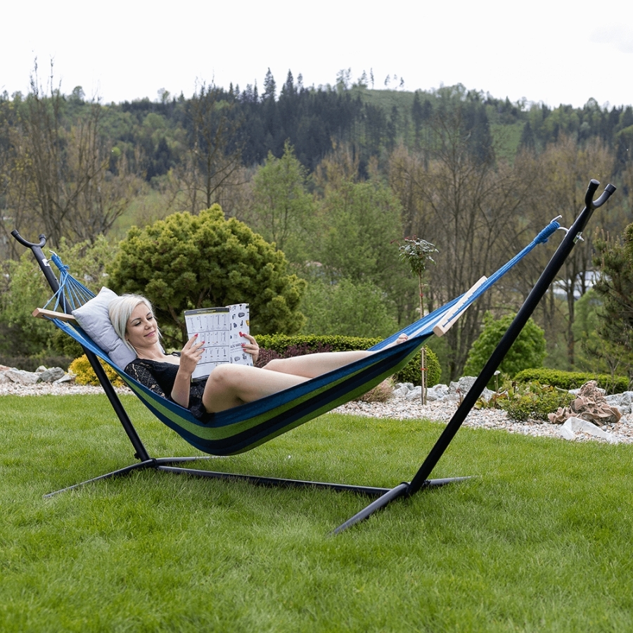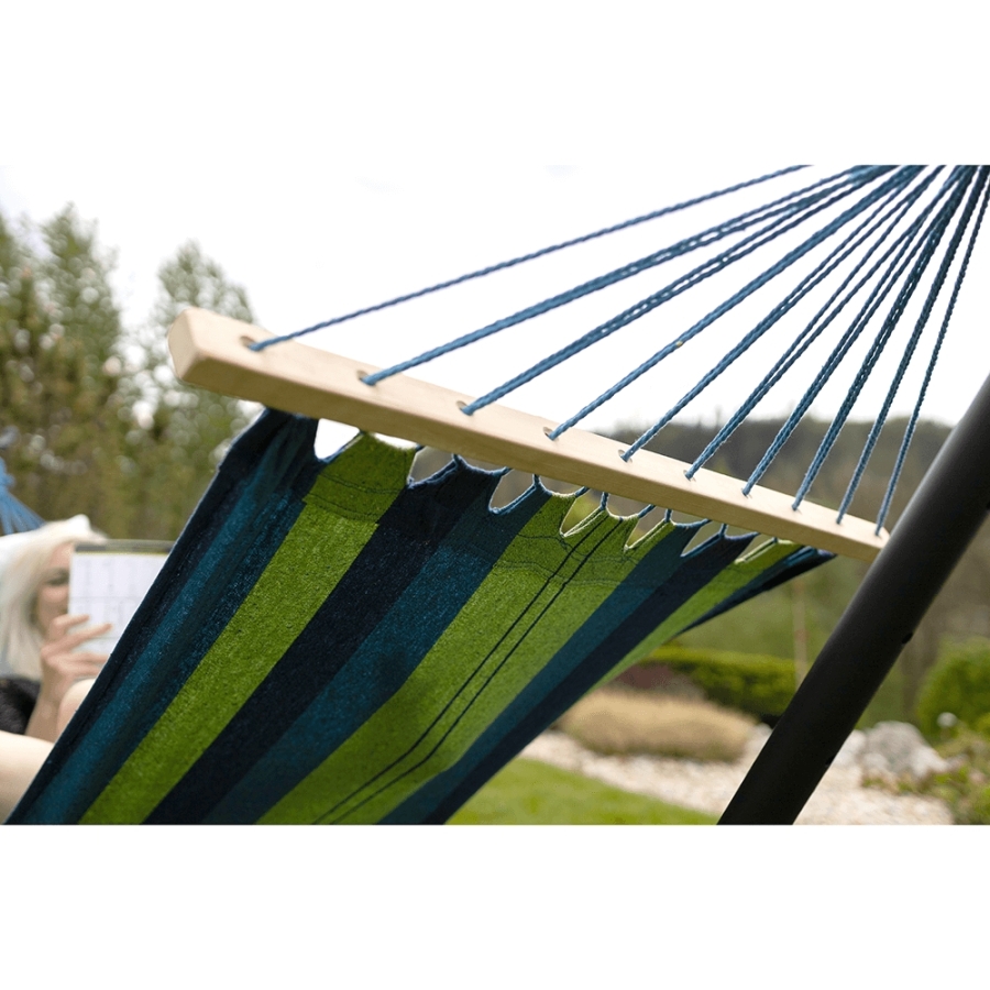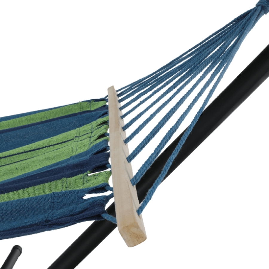Függőágy EVANA NEW Anyag: pamut/fa/polistirol Fekvőfelület (SzéxHo): 80x200cm Teljes hossz: 250cm Szín: türkiz/kék/zöld Terhelhetőség: 120 kg Állvány nélkül szállítjuk Az állvány nem része a csomagnak, megrendelhető Bontásban szállítva. Mosási hőmérséklet 60° Ne fehérítse Közepes hőmérsékleten vasalja Árnyékban szárítás Vegyszerrel ne tisztítsa