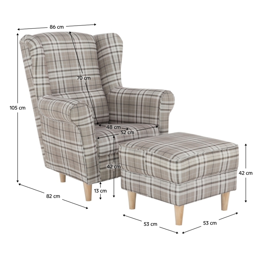 Méretek(SzéxMéxMa):86x105x72 cm, puff:53x42x53 cm.