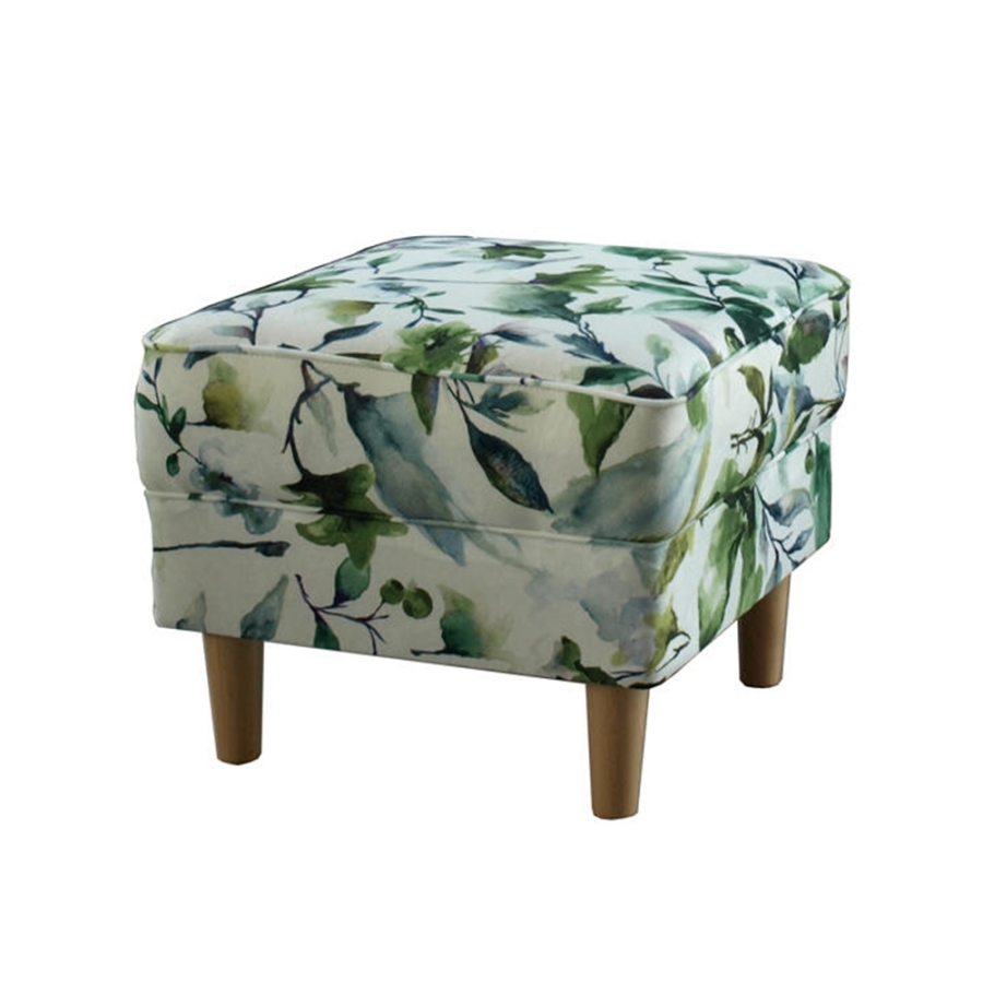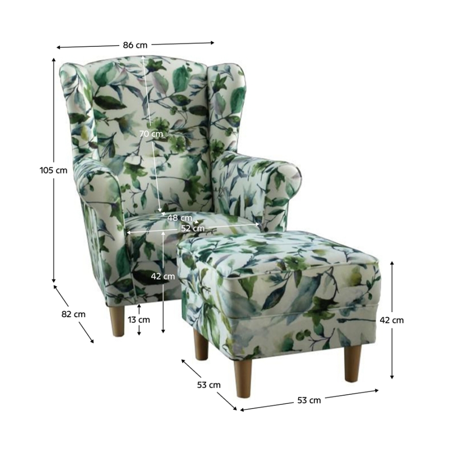 Füles fotel puffal, szövet minta zöld levél, ASTRID
