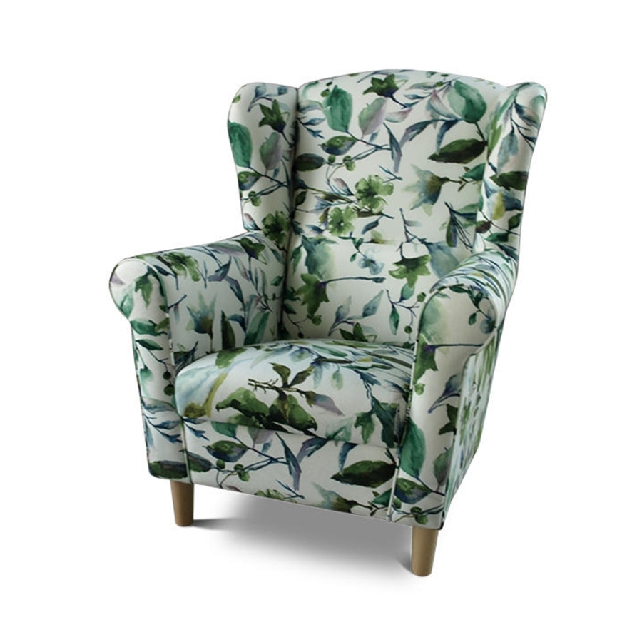 Füles fotel CHARLOT szövetben zöld levél mintázattal