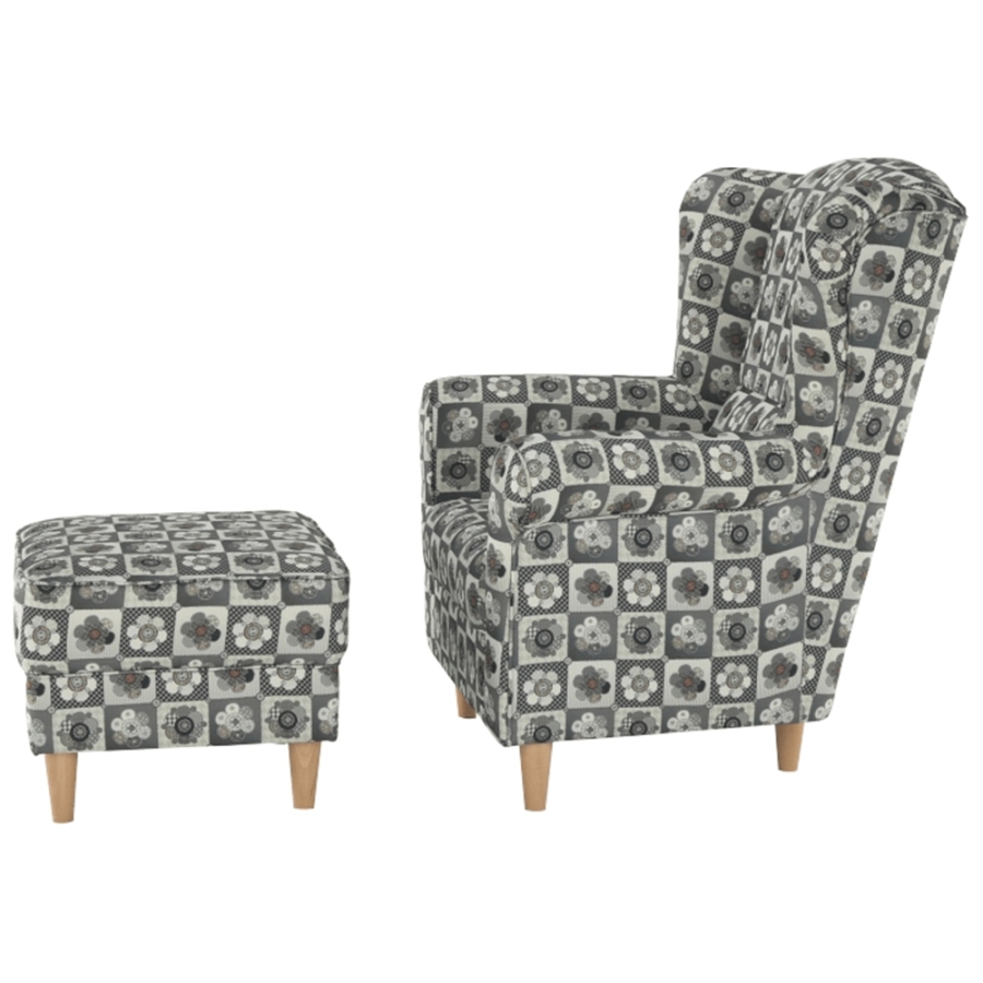 Kényelmes füles fotel puffal