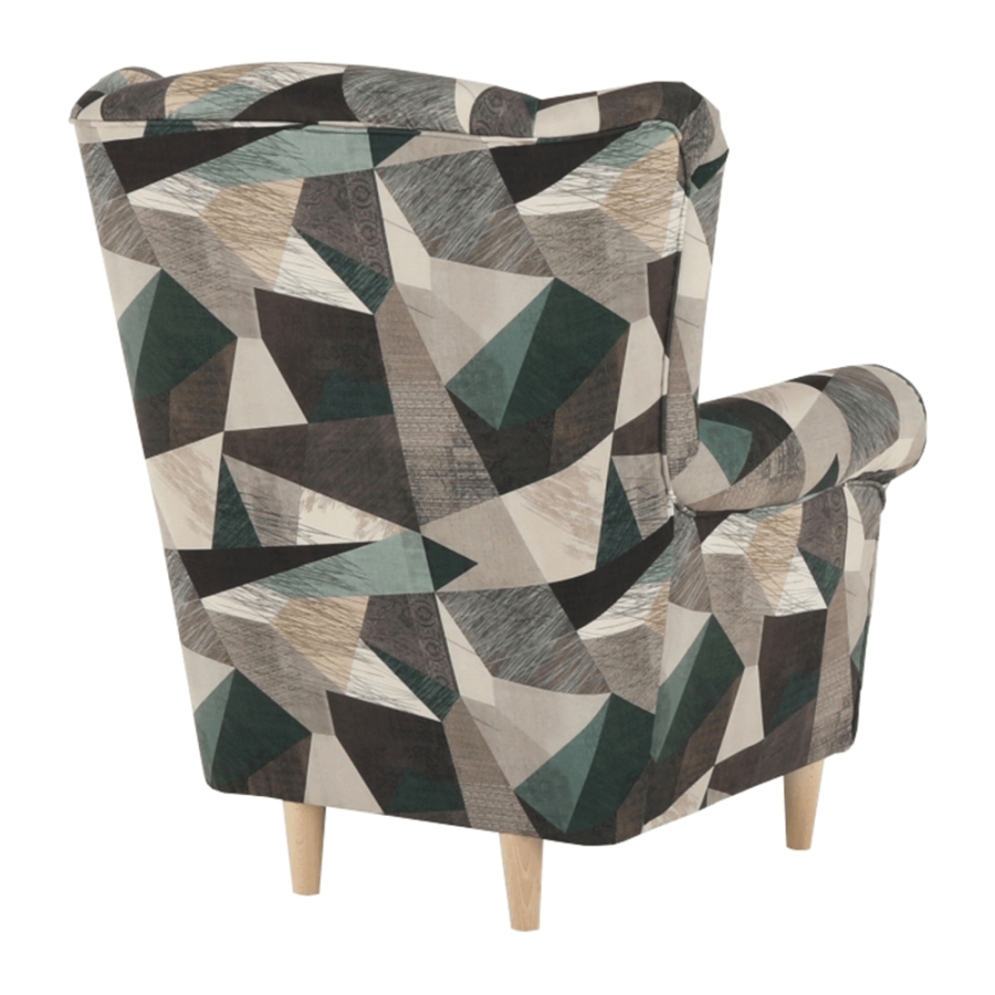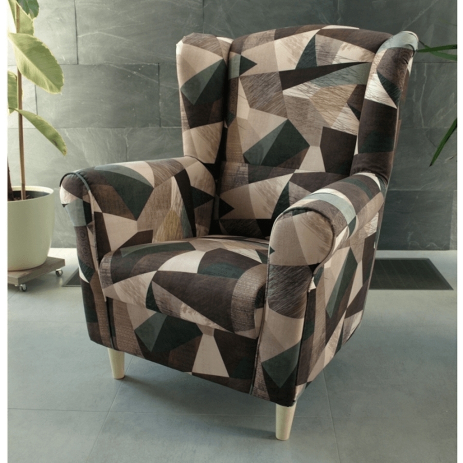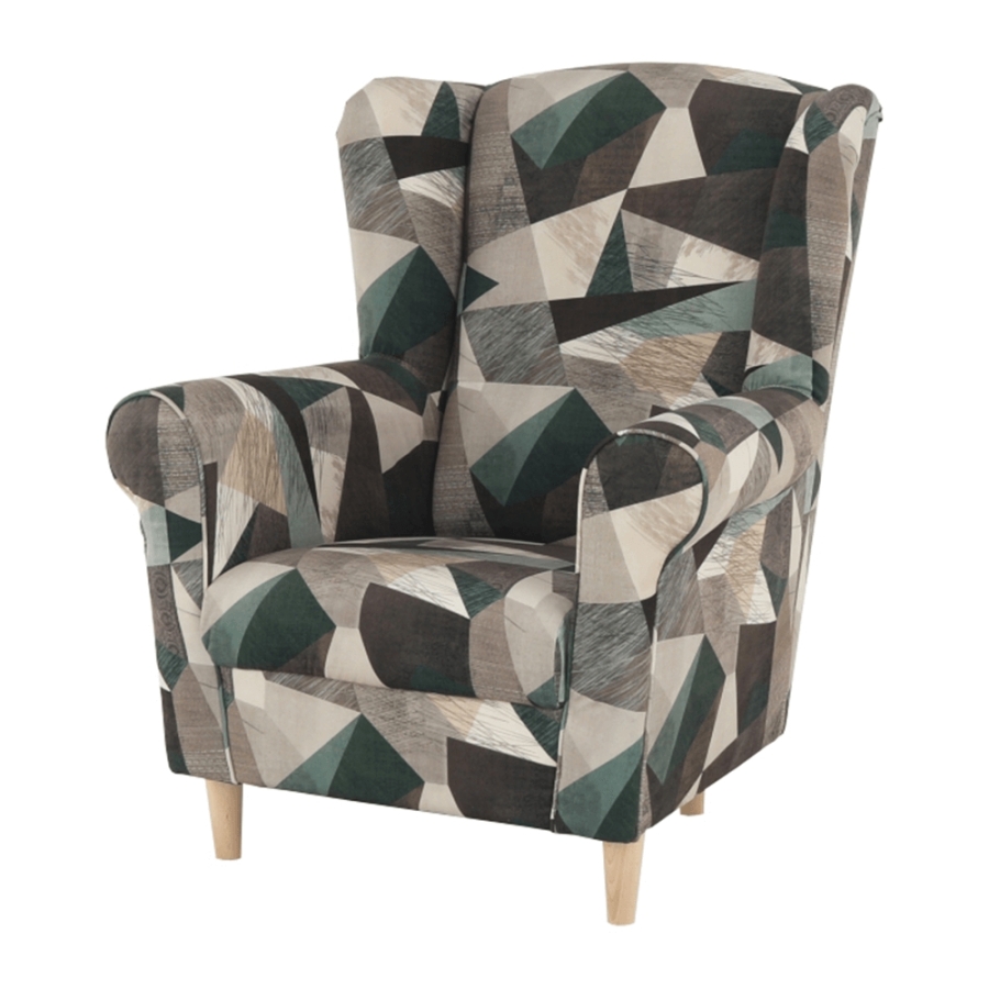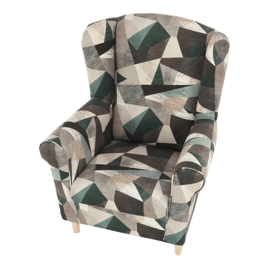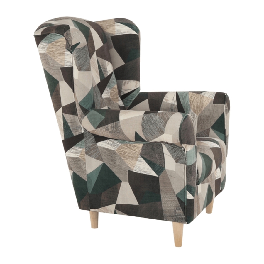 Fotel-füles CHARLOT Holm barna-zöld szövetben mintával. Fa lábak.