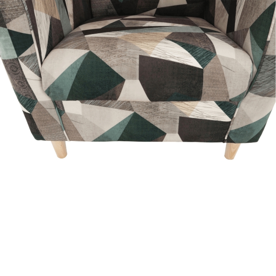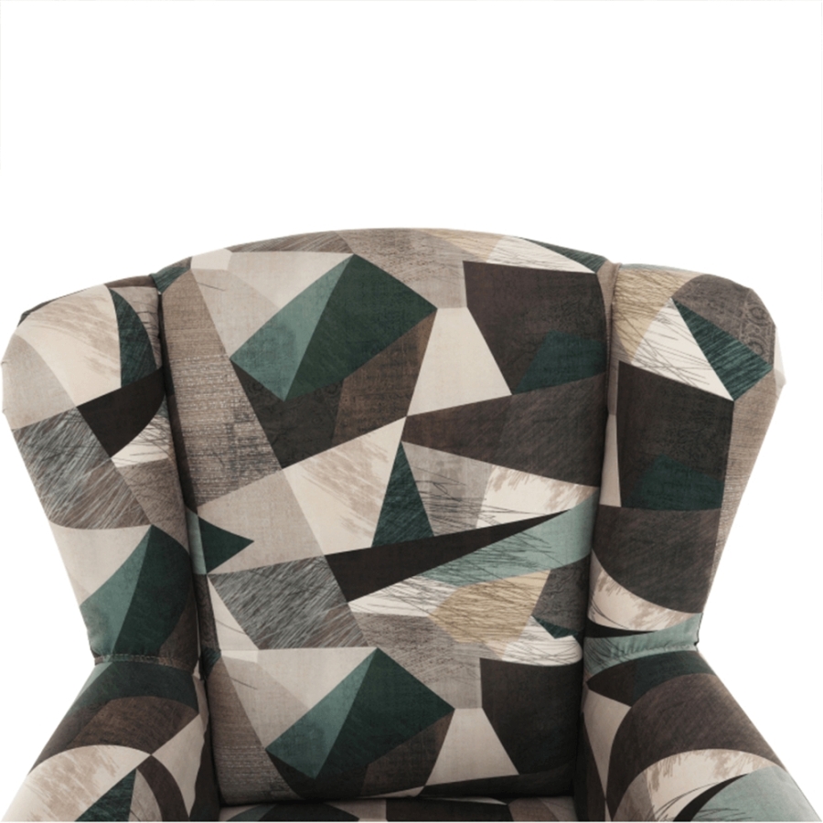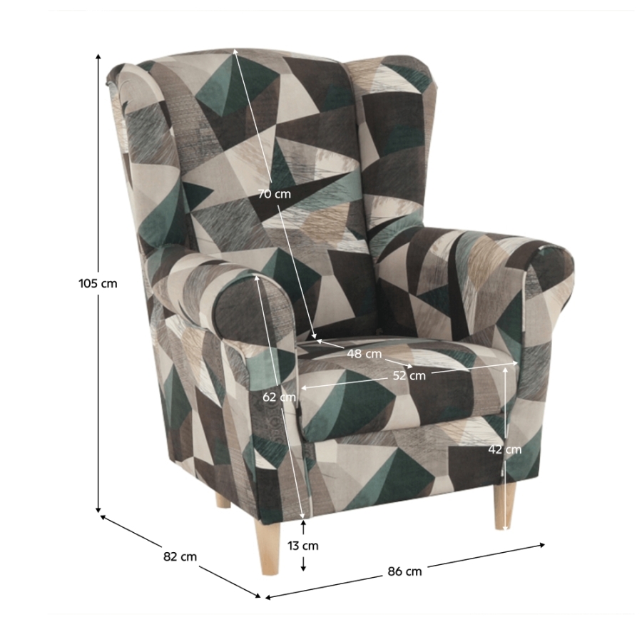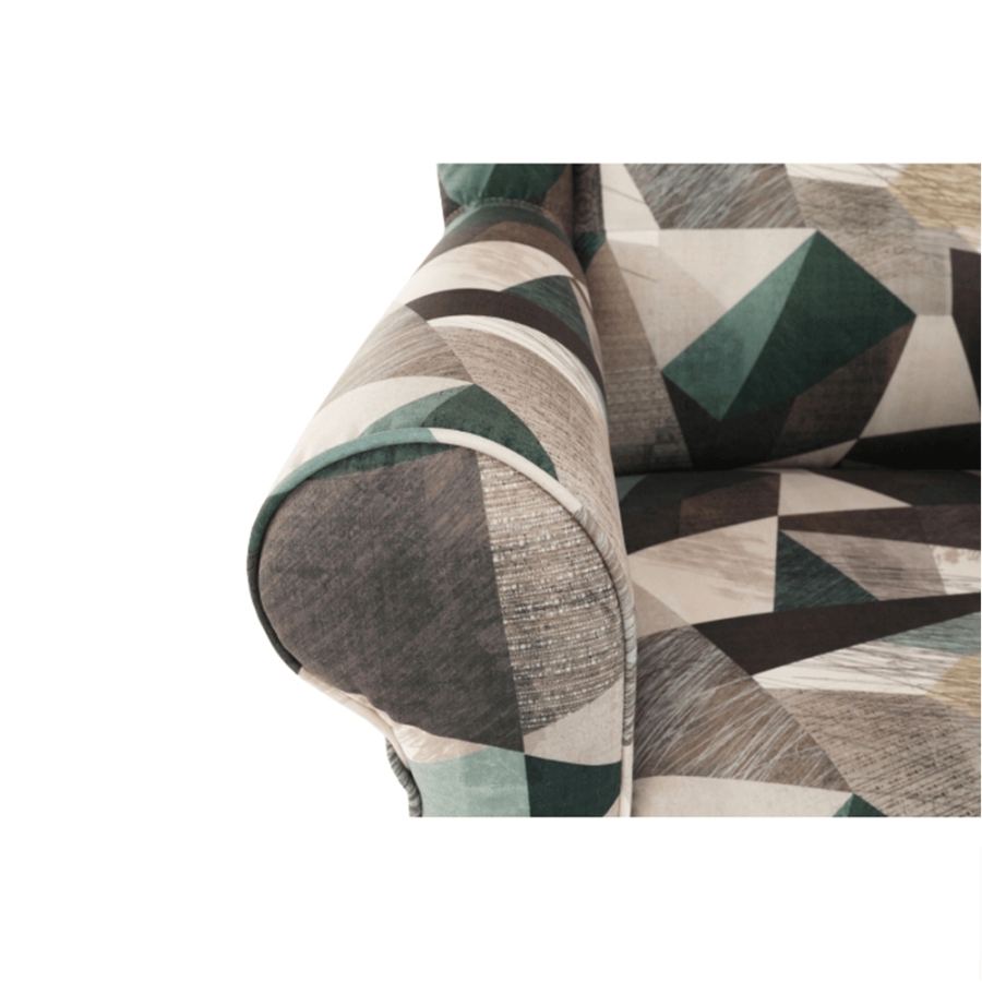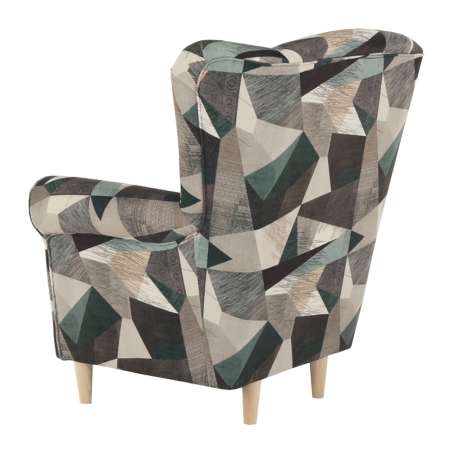Fotel-füles CHARLOT Holm barna-zöld szövetben mintával. Fa lábak.
