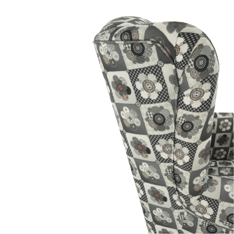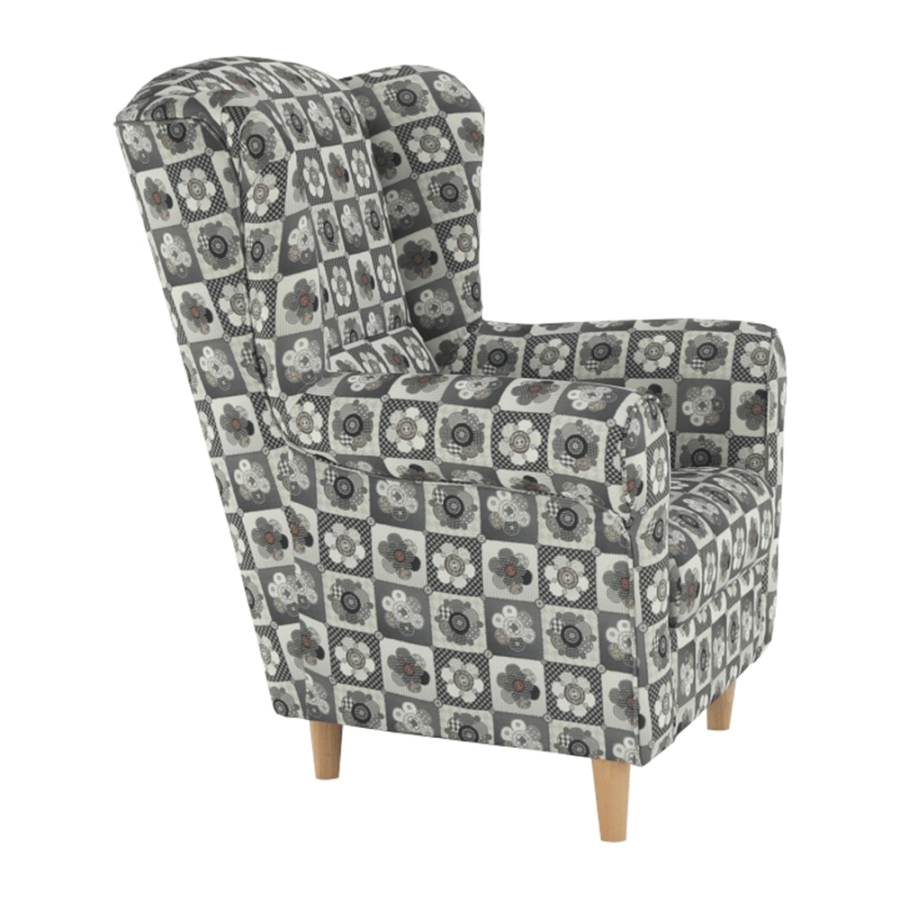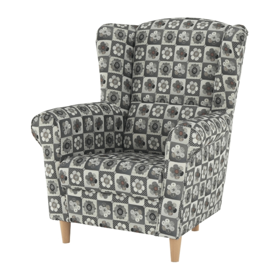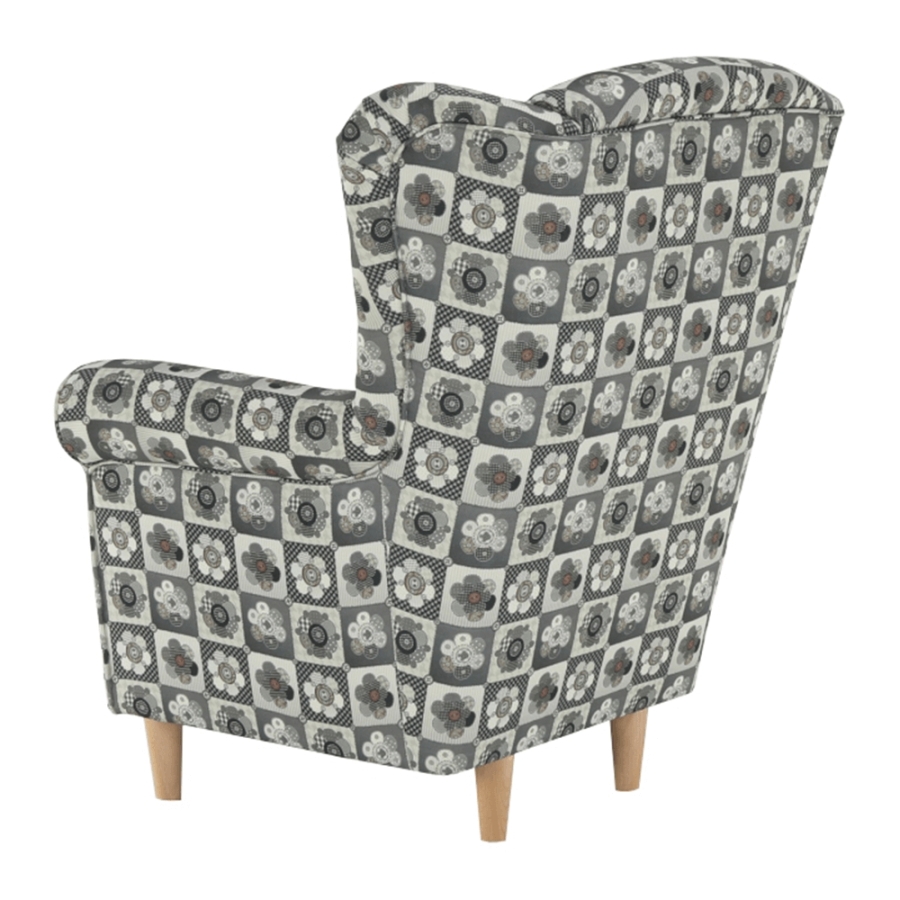 Füles fotel CHARLOT patchwork N1 szövet változatban. A fa lábak bükk színváltozatban készültek.