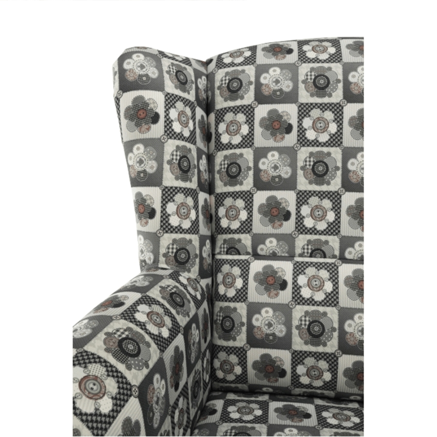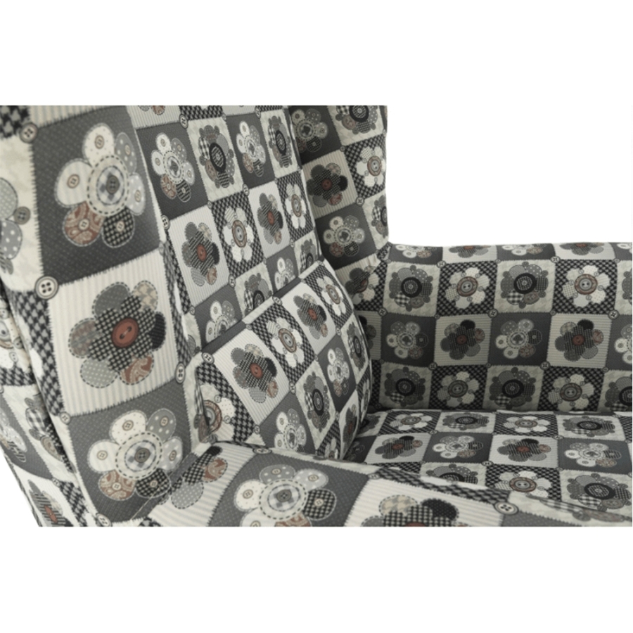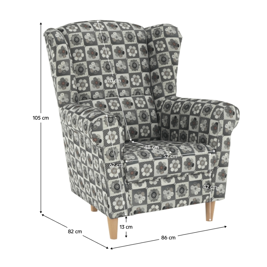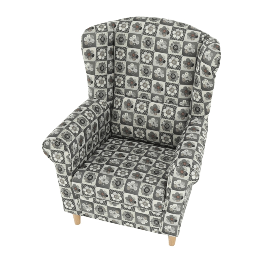 Füles fotel CHARLOT patchwork N1 szövet változatban. A fa lábak bükk színváltozatban készültek.