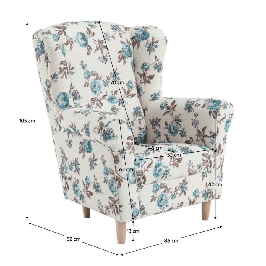 Füles fotel CHARLOT Rose 14 szövet változatban. A fa lábak bükk színváltozatban készültek.
