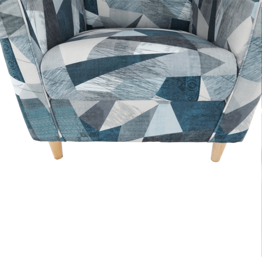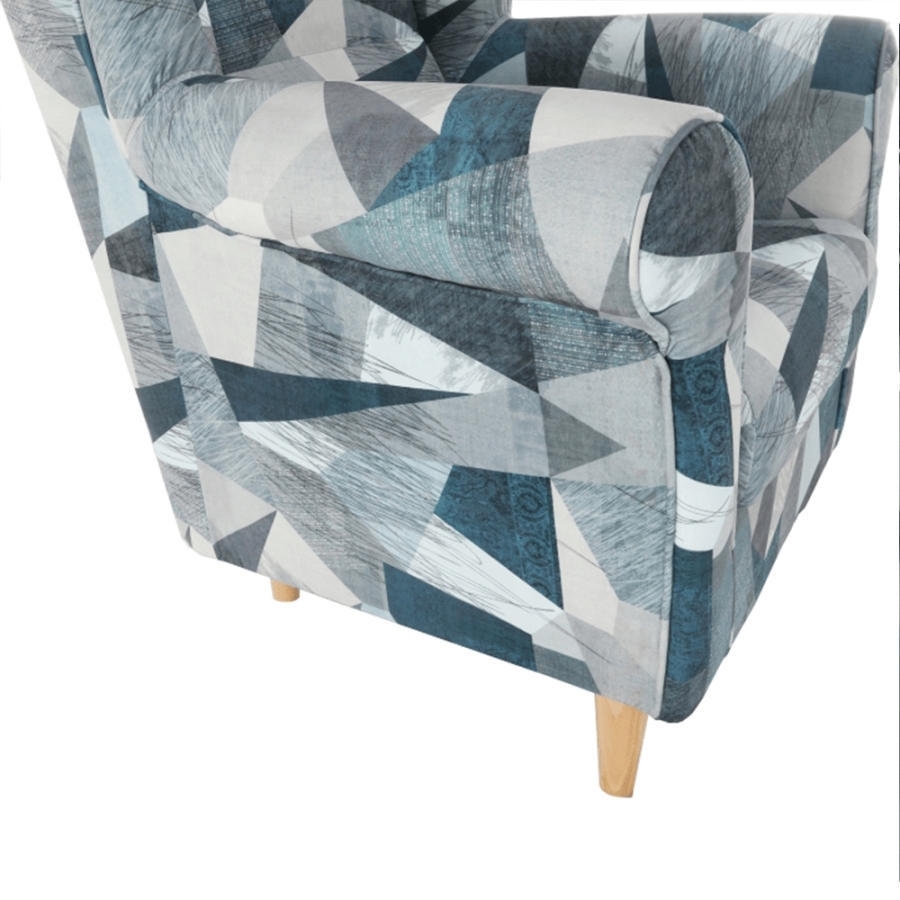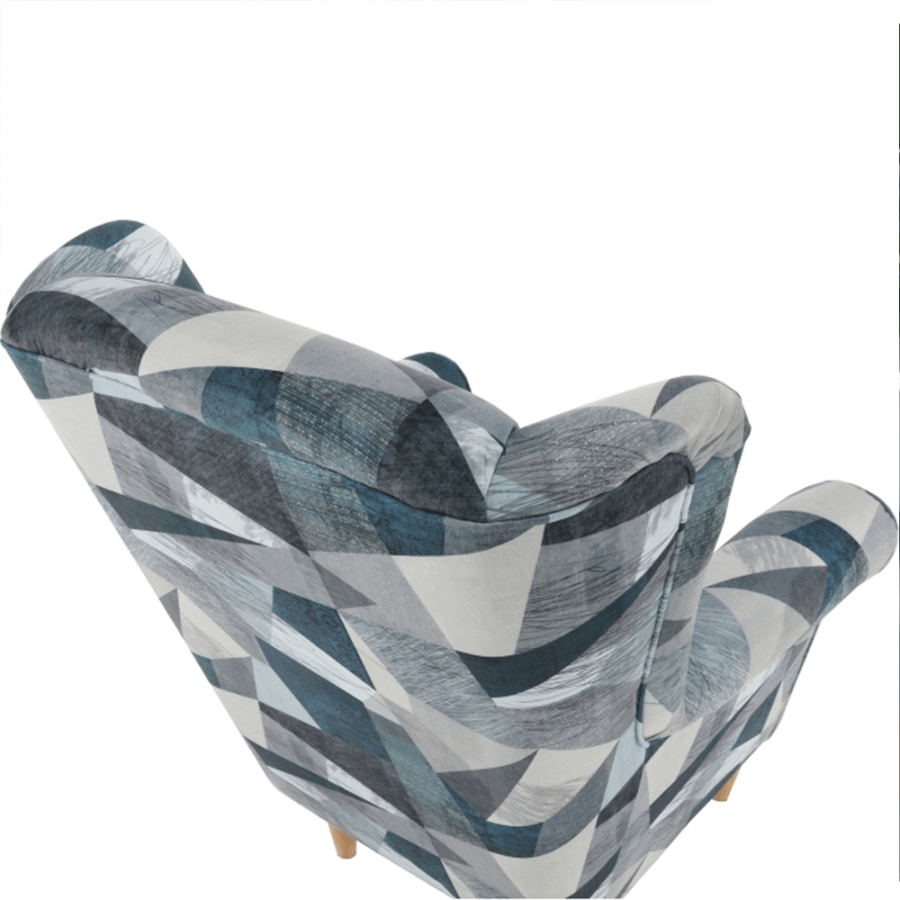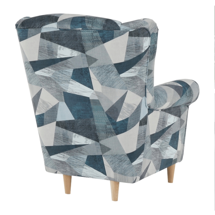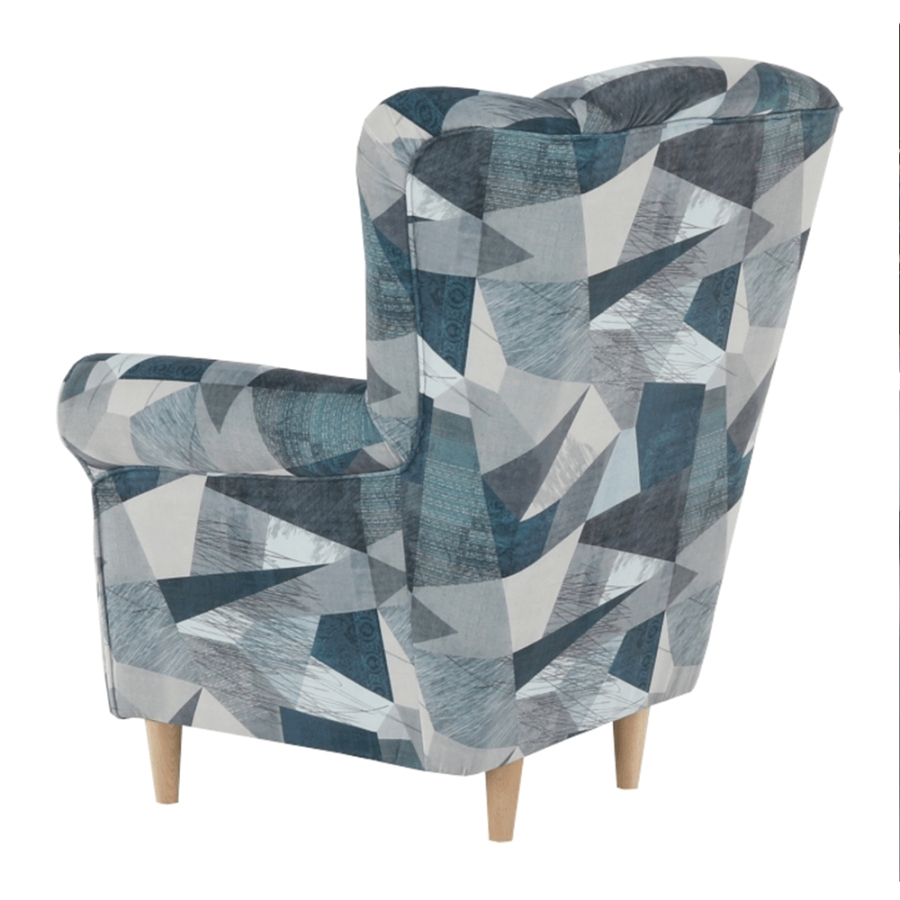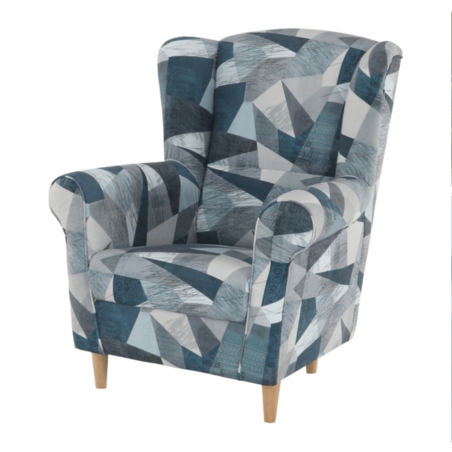 Fotel-füles CHARLOT Holm szürke-kék szövetben mintával. Fa lábak.