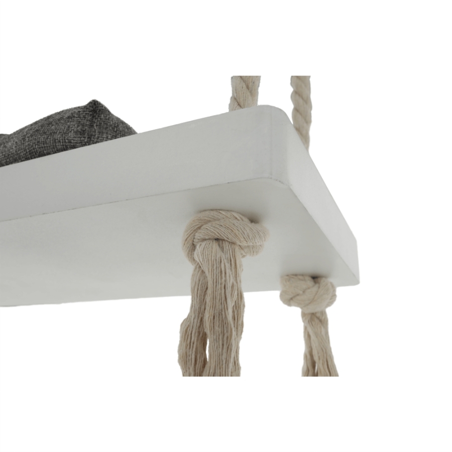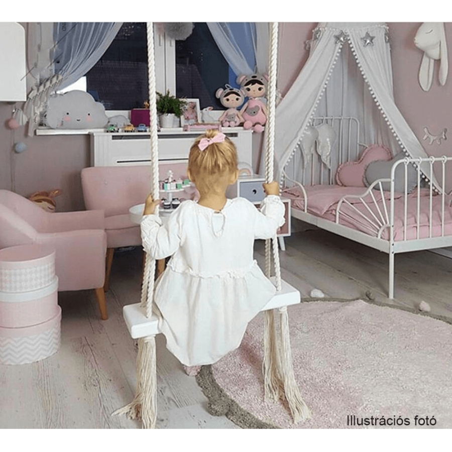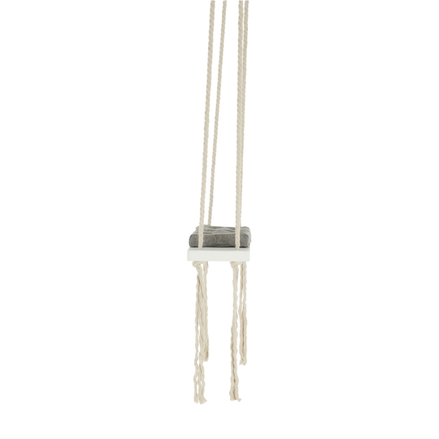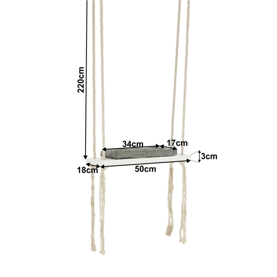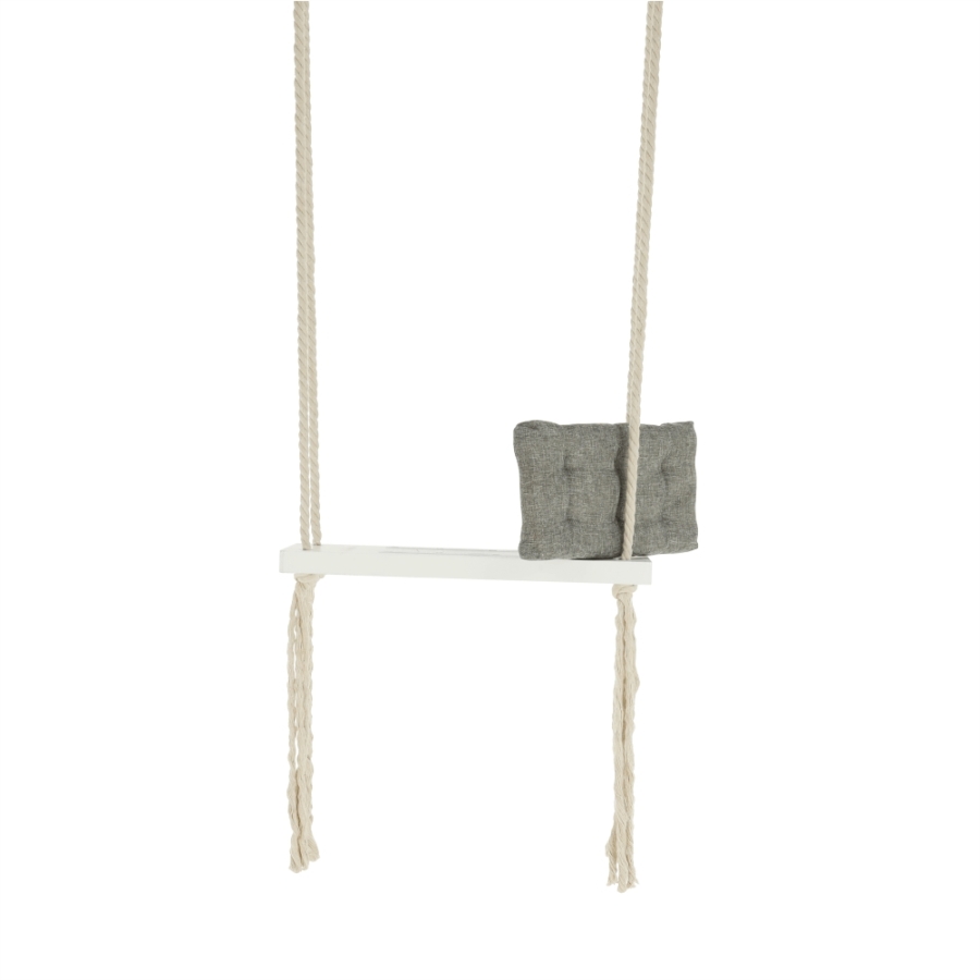 Hinta SVING Anyag: fa/anyag/ kötél Szín: fehér/szürke/fehér Méretek hinta (SzxVxH): 50x18x3 cm Méretek párnák (SzxVxH): 34x17x4 cm Teherbírás: 60 kg Belső használatra alkalmas Gyerekeknek alkalmas Modern kialakítás Bontásban szállítva.