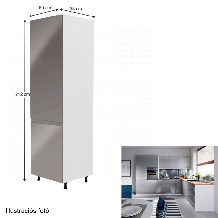 Hűtőgép szekrény, fehér/szürke extra magasfényű, balos, AURORA D60R