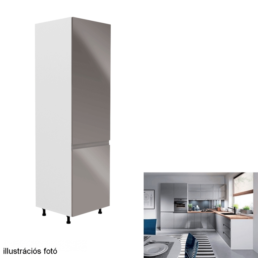 Hűtőgép szekrény, fehér/szürke extra magasfényű, jobbos, AURORA D60R