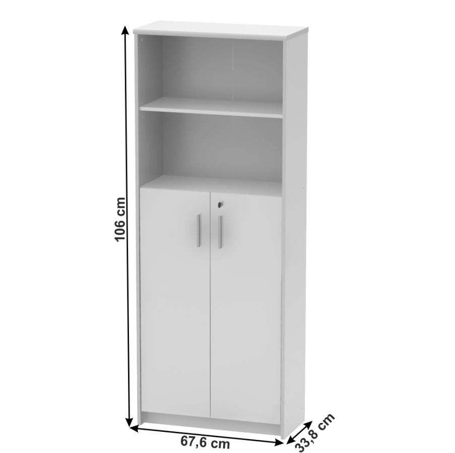 Irodai állvány záras szekrénnyel, és nyitott tárolóhellyel JOHAN 2 NEW 10 ajtózár Színkivitel: fehér Anyag: laminált DTD ABS élek Méretek (SzéxMéxMa): 72,5x33,8x186 cm