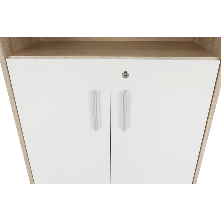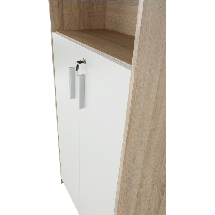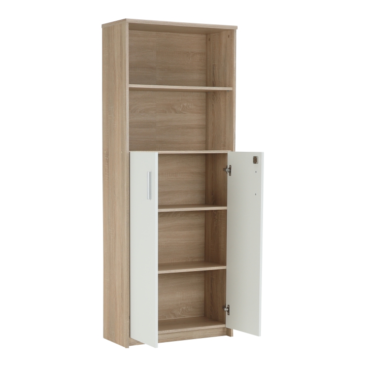 Irattartó zárható szekrénnyel és nyitott tárolóhellyel JOHAN 2 NEW 10 Ajtózár Színváltozat: sonoma tölgy/fehér Anyaga: laminált DTD Méretek (SzéxMéxMa): 72,5x33,8x186 cm Zárható szekrény Belül két polccal A szekrény mérete (SzéxMéxMa): 2,5x33,8x186 cm Nyitott tárolóhely Egy polc Belső polcok vastagsága: 1,6 cm A polcok teherbírása: 5 kg ABS élek Szlovák termék Lapraszerelten szállítva