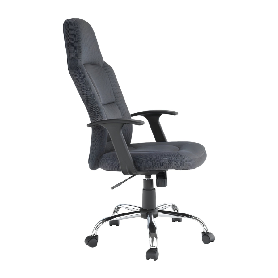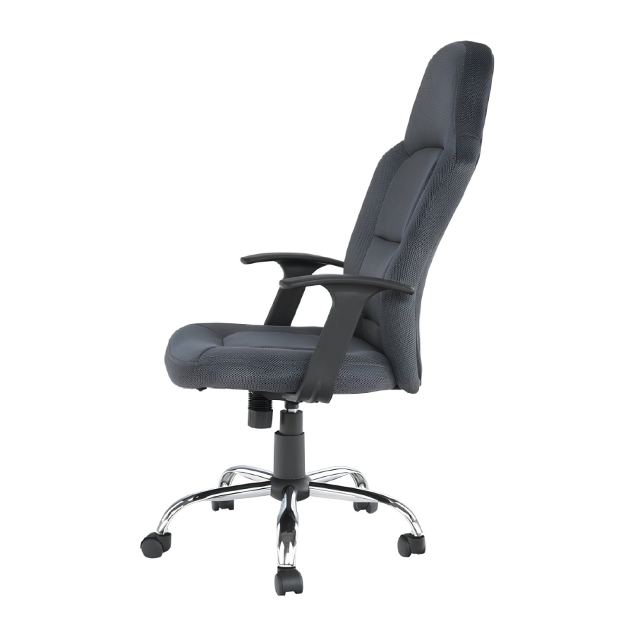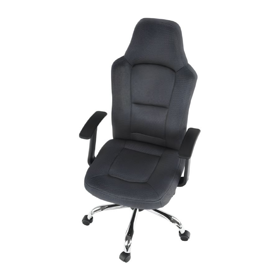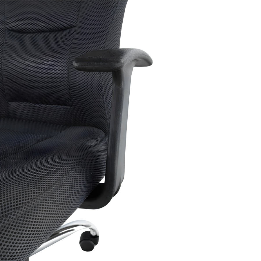 Irodai szék állítható kartámasszal. Az alsó rész krómból, a kartámlák műanyagból készültel.