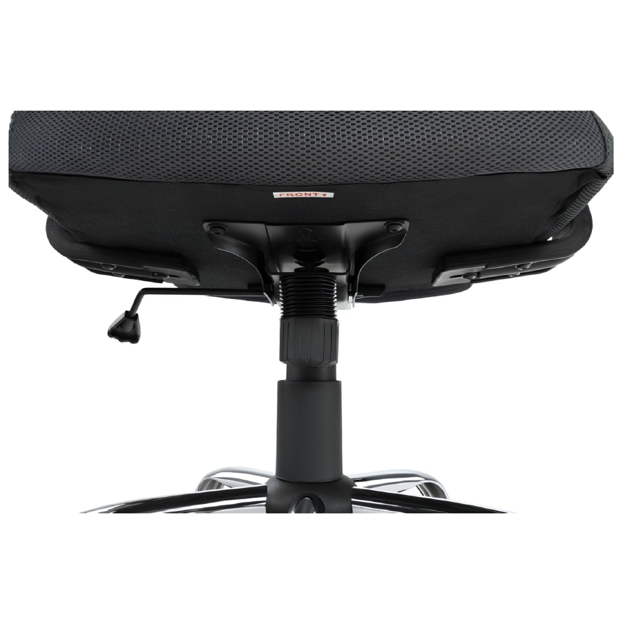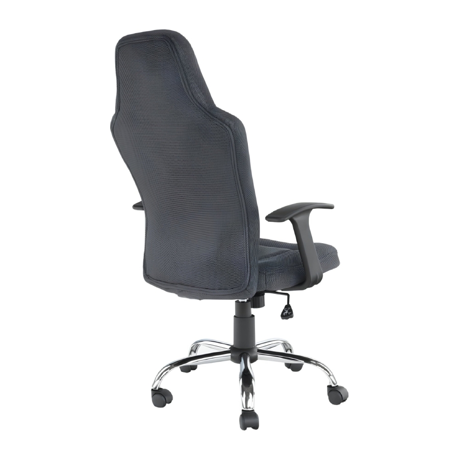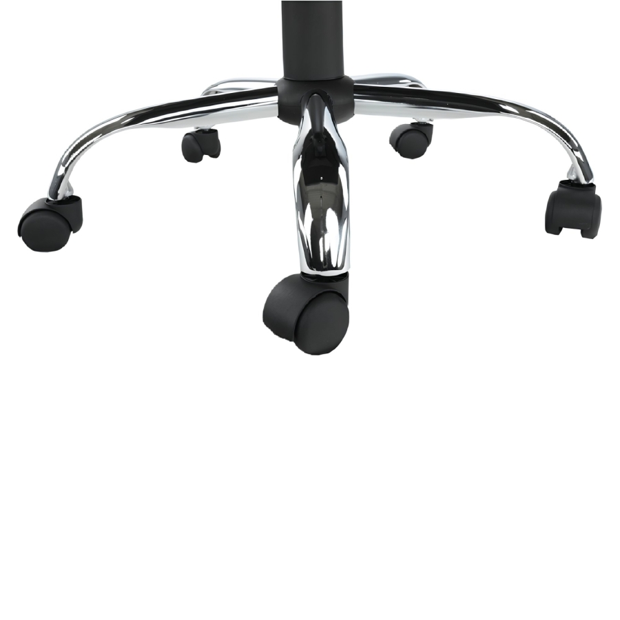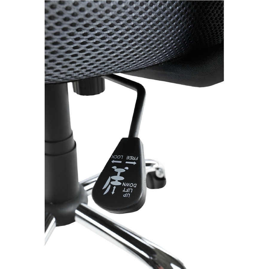 Irodai szék állítható kartámasszal. Az alsó rész krómból, a kartámlák műanyagból készültel.