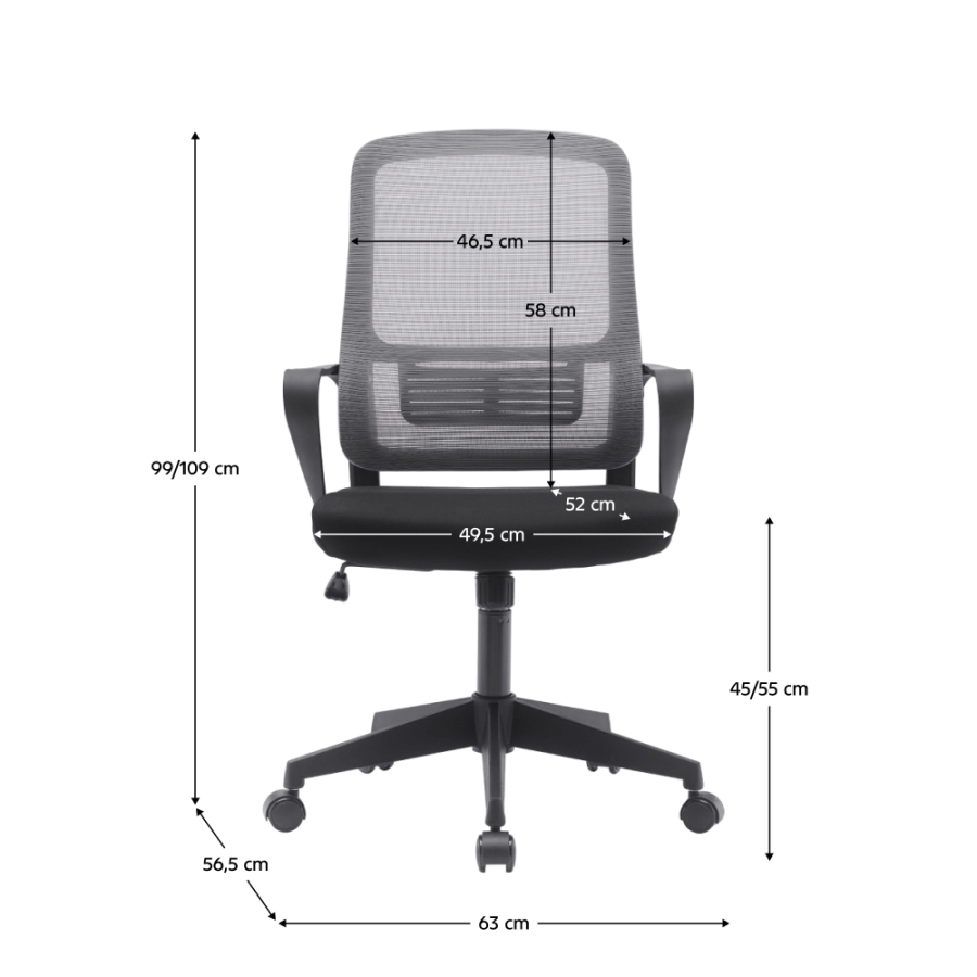Méretek (SzxMéxMa): 63x56,5x99-109 cm