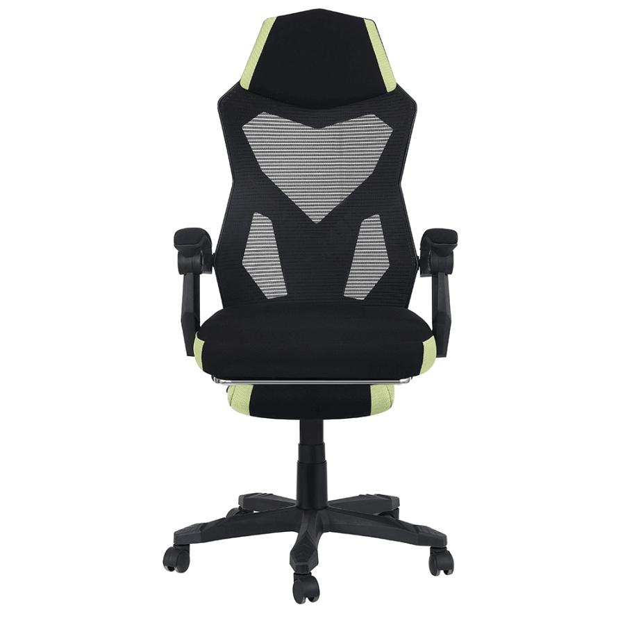 Szerkezet anyaga: műanyag Szín: fekete Kárpitozás anyaga: háló A háló kopásállósága a Martindale teszt szerint: 90 000 ciklus Szín: fekete/zöld Méretek (SzxMéxMa): 60x65x108-118 cm Állítható ülésmagasság: 45-55 cm Ülés mélysége: 49 cm Ülés szélessége: 50 cm Háttámla magassága: 75,7 cm Háttámla szélessége: 48 cm Maximális teherbírás: 150 kg A pozicionálható háttámla dőlésszöge 90-135° Hosszú ülésre van tervezve Kárpitozott kéztámlák Fa tartó keret az ülésen Műanyag tartó keret a háttámlán Műanyag alap Kihúzható lábtartó Bontásban szállítva